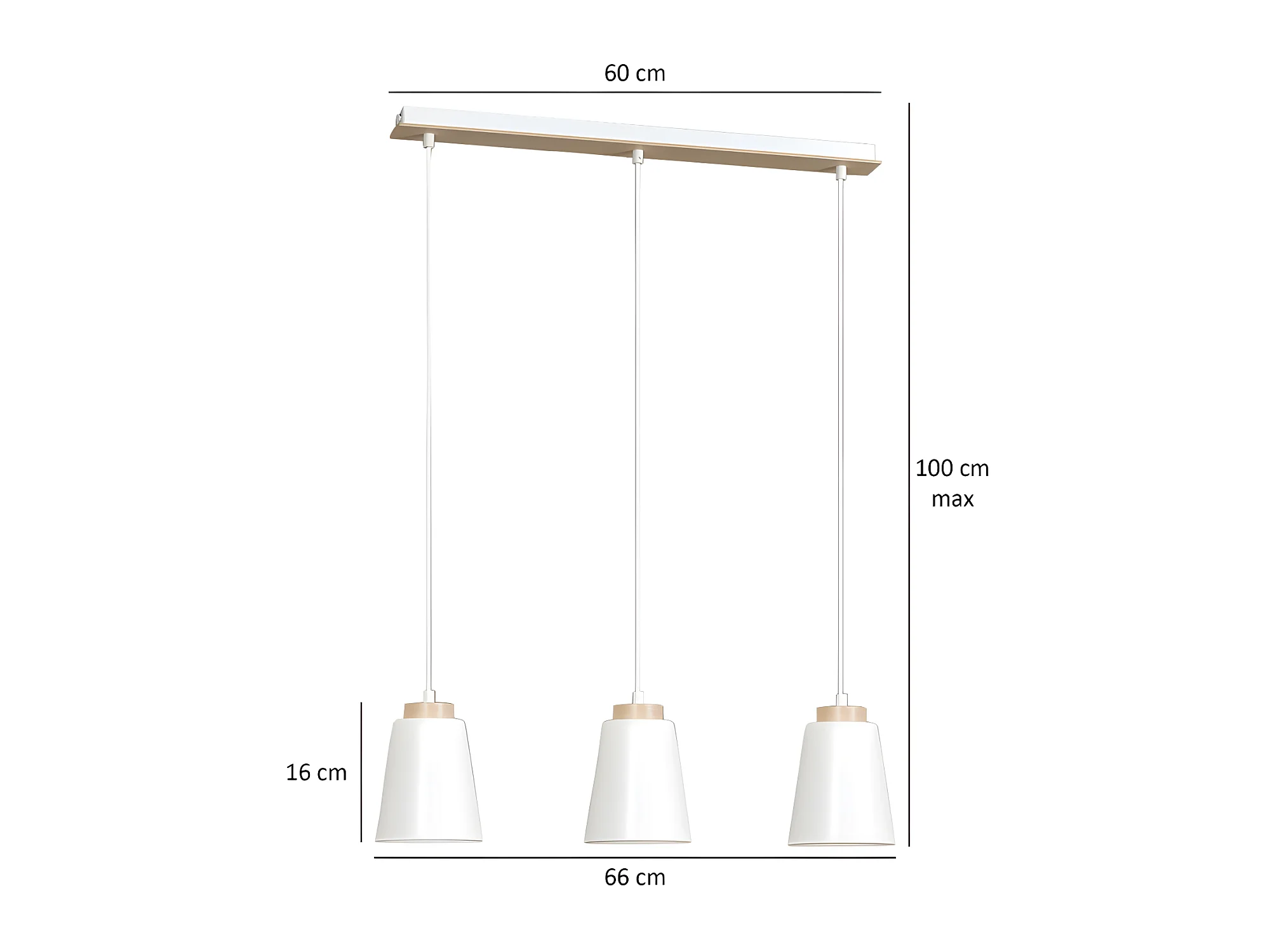 Lampada da soffitto nordic Lasso con 3 paralumi in metallo bianco e legno 3xE27