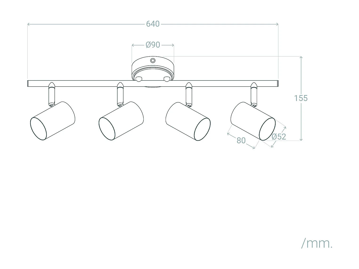Lampada da Soffitto Orientabile Legno 4 Faretti Olmo Bianco