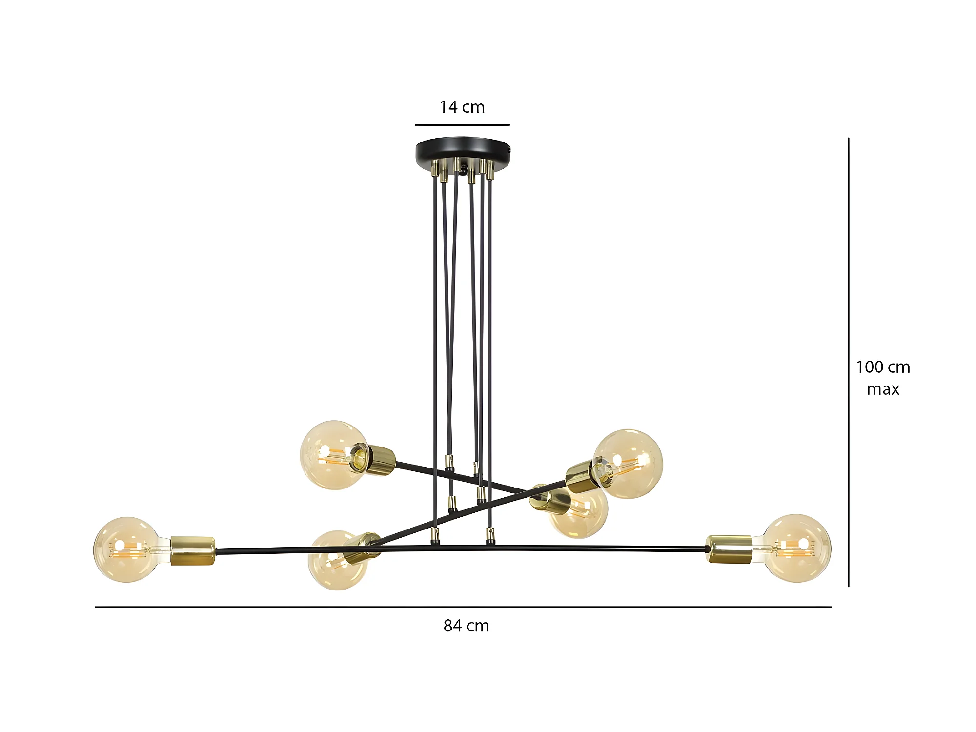 Lampada da soffitto Sives con barre in metallo bianco e 6 portalampade dorati 6xE27 ø84cm