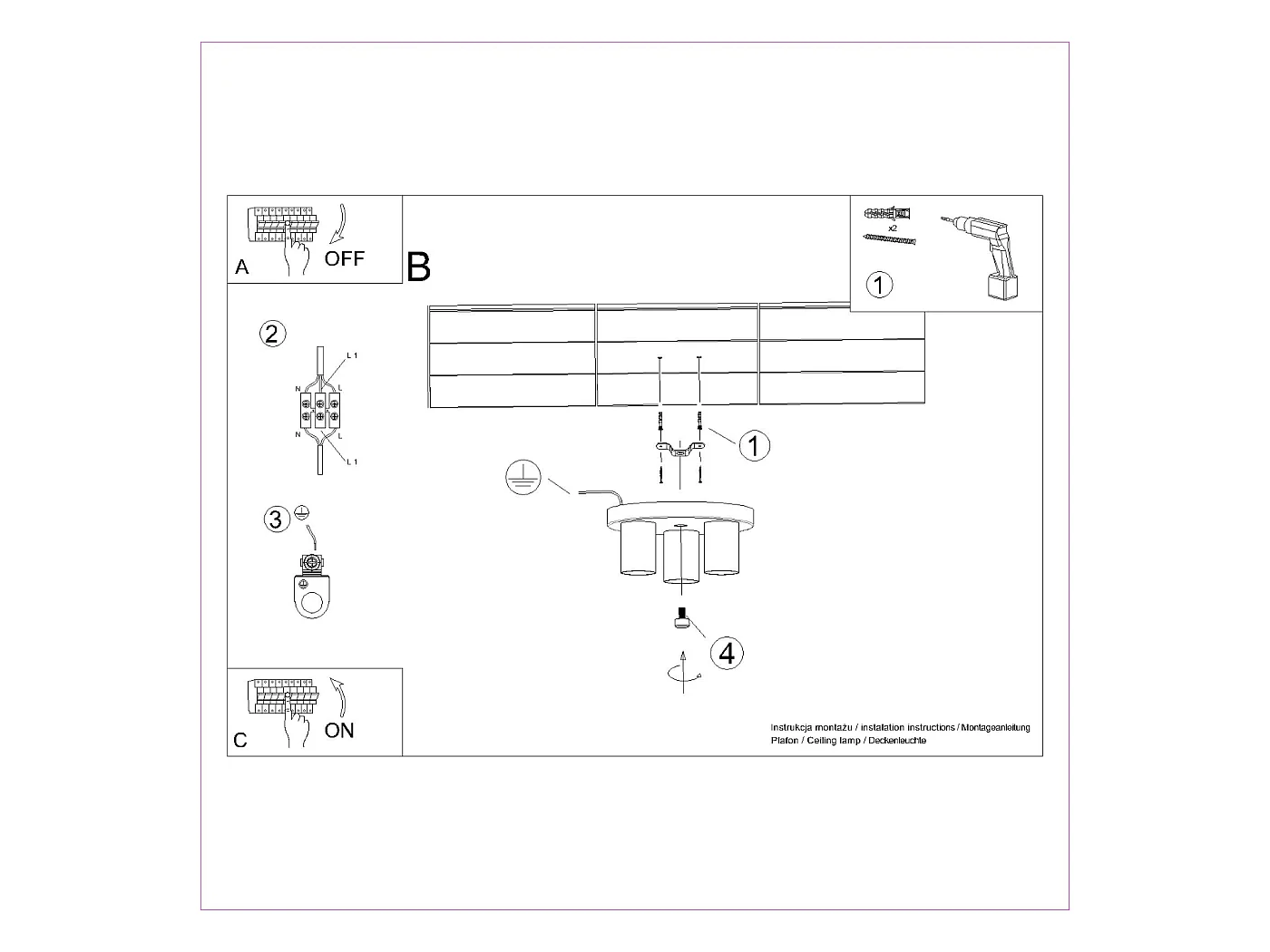 Lampada Da Soffitto Lagos Moderno Di Acciaio - 3 Sorgenti Luminose - L.25 X A.12 Cm - Bianco