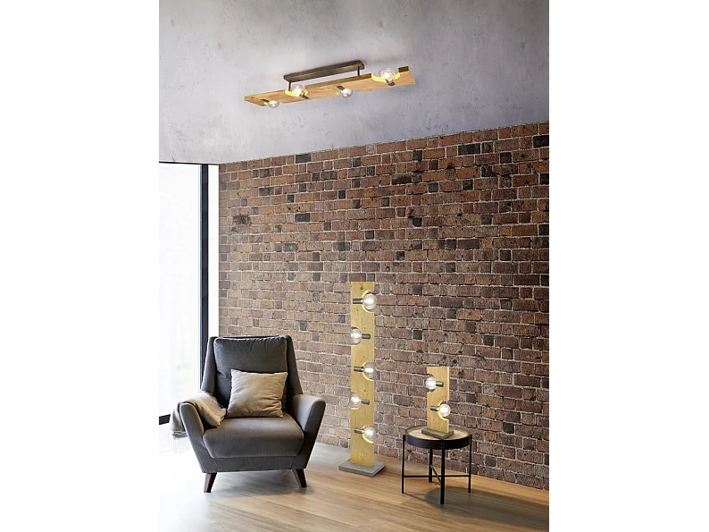 Lampada da tavolo, legno, naturale, 12x30x12 cm, Woody