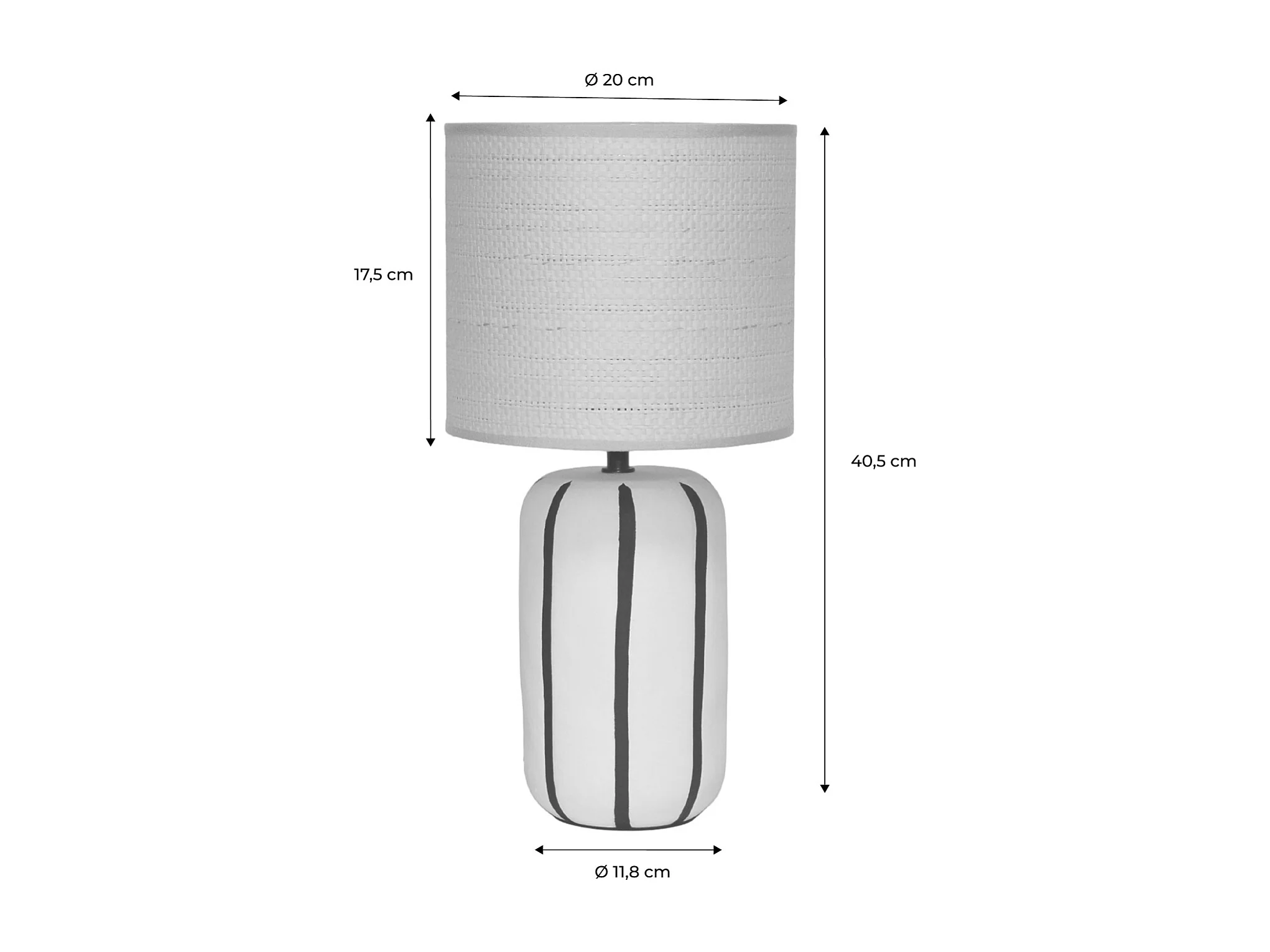 Lampada da tavolo in ceramica smaltata bianco e paralume in rafia naturale H64 cm MAJES