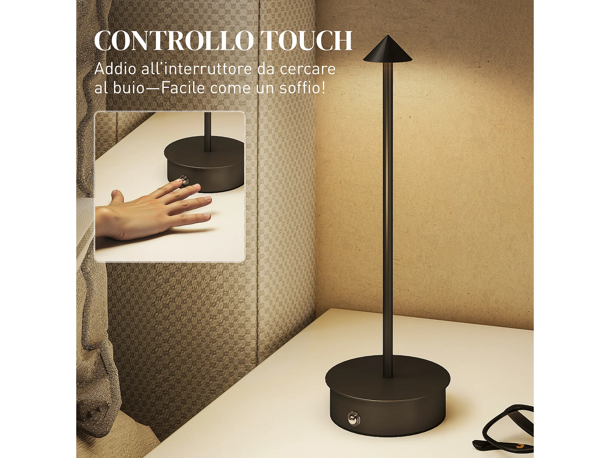 Lampada da tavolo ricaricabile touch e regolabile nero