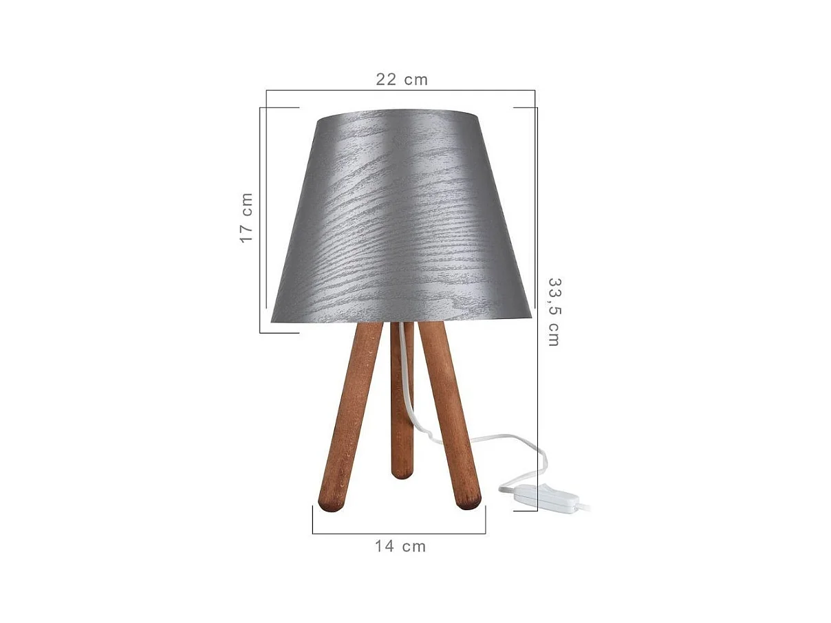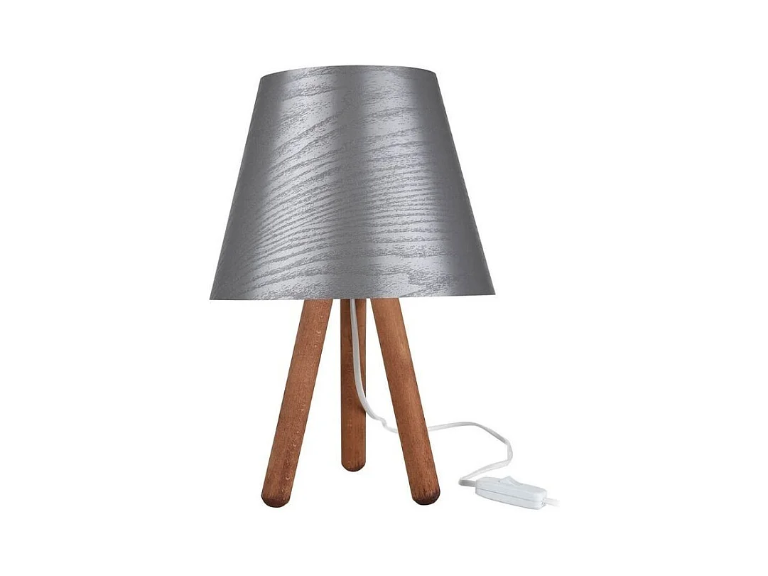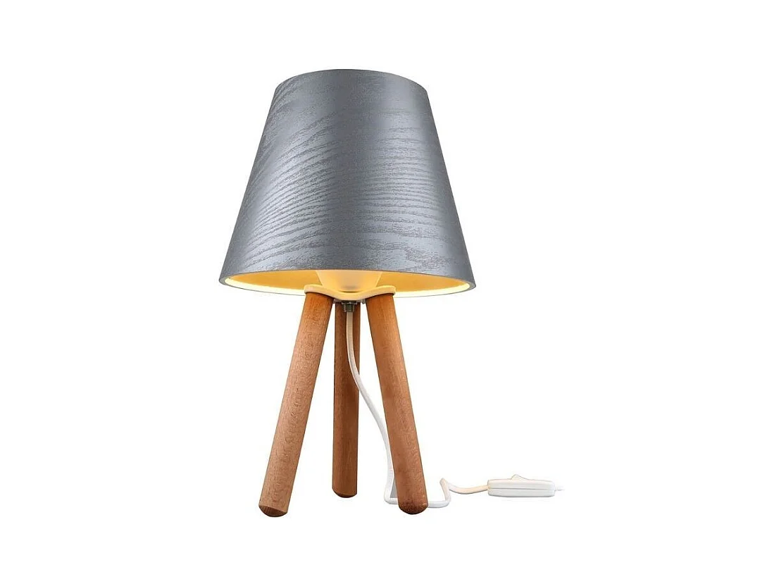 Lampada da tavolo treppiede legno e paralume grigio Pino ASZ1453
