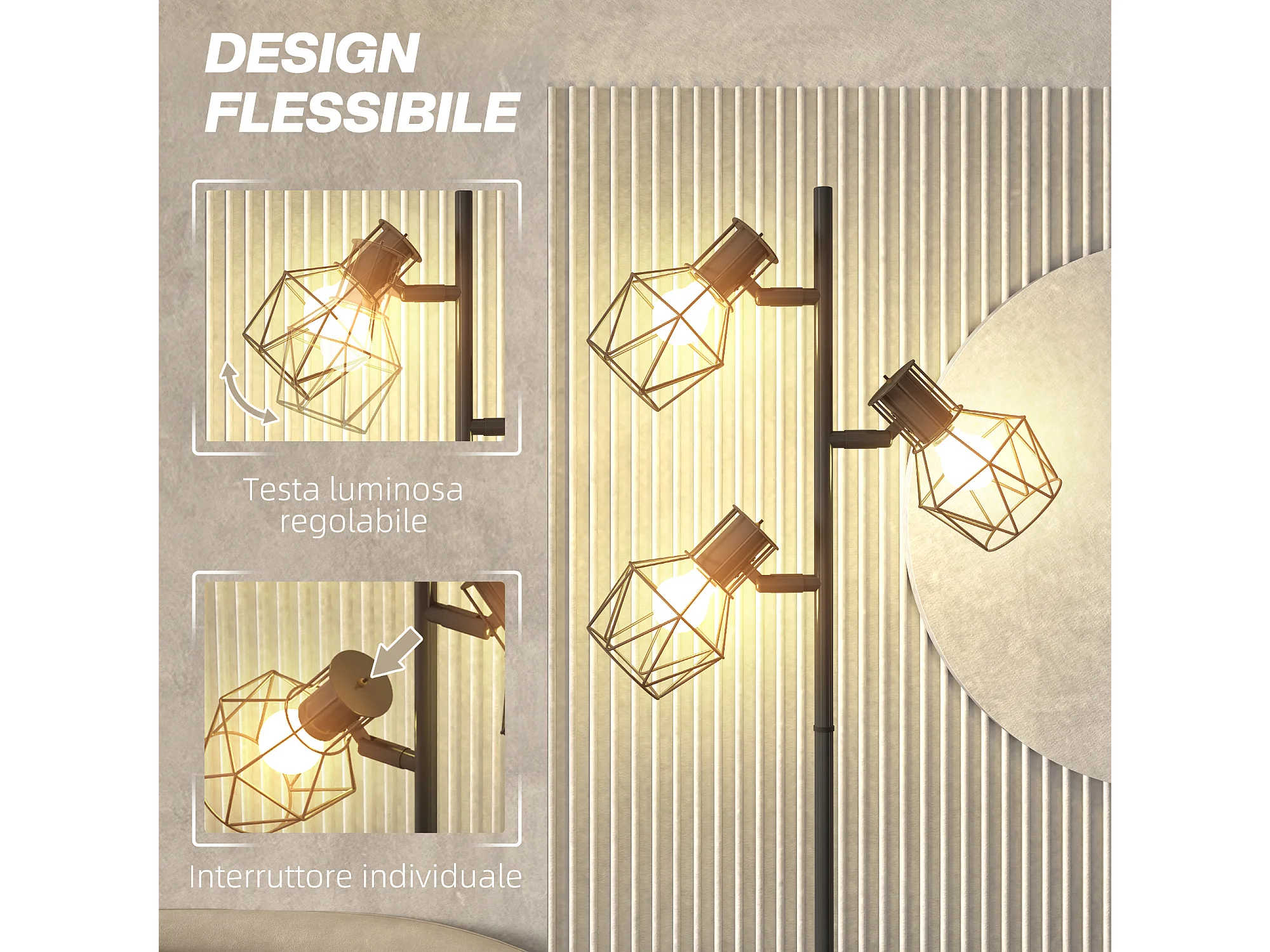 Lampada da terra 40w con 3 luci regolabili in metallo nero