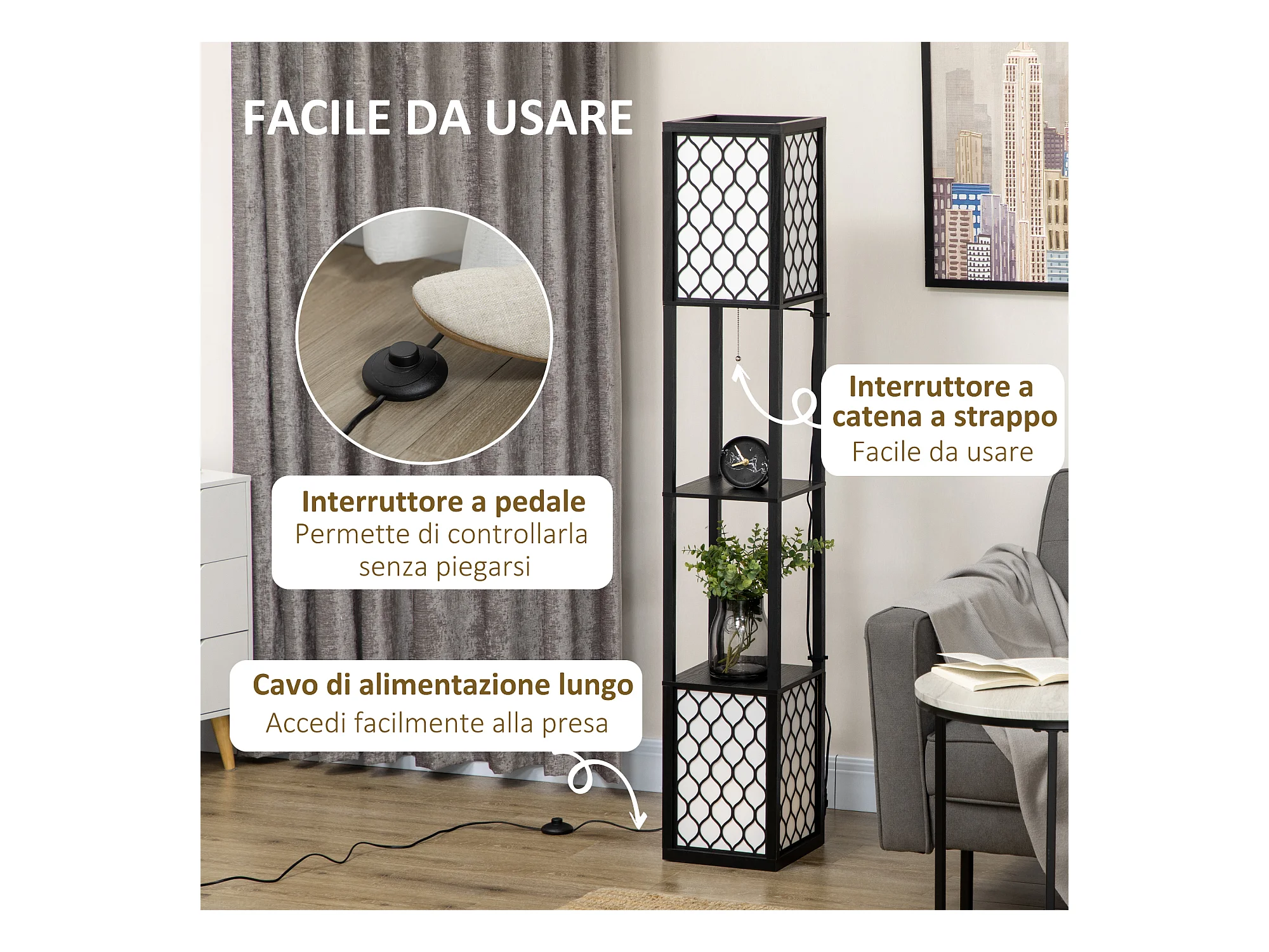 Lampada da terra a colonna in mdf e plastica pp con 2 ripiani