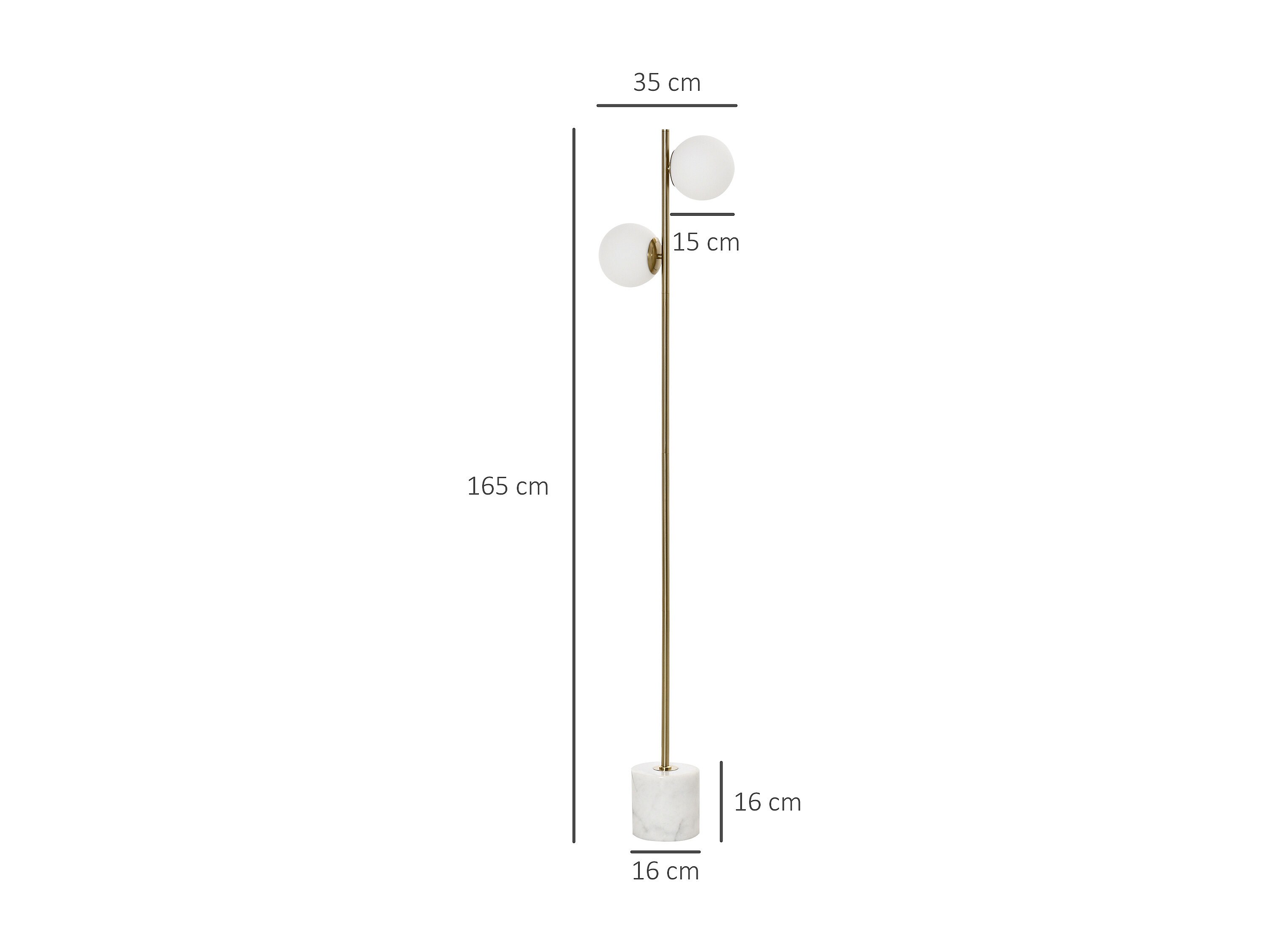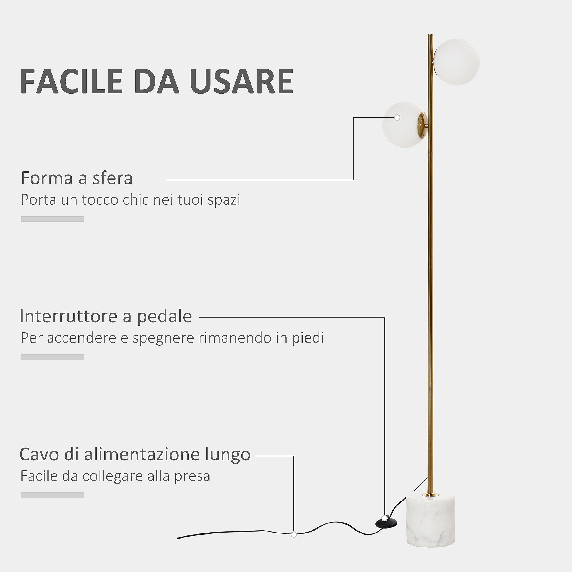 Lampada da terra con 2 luci e base in marmo altezza 165cm oro