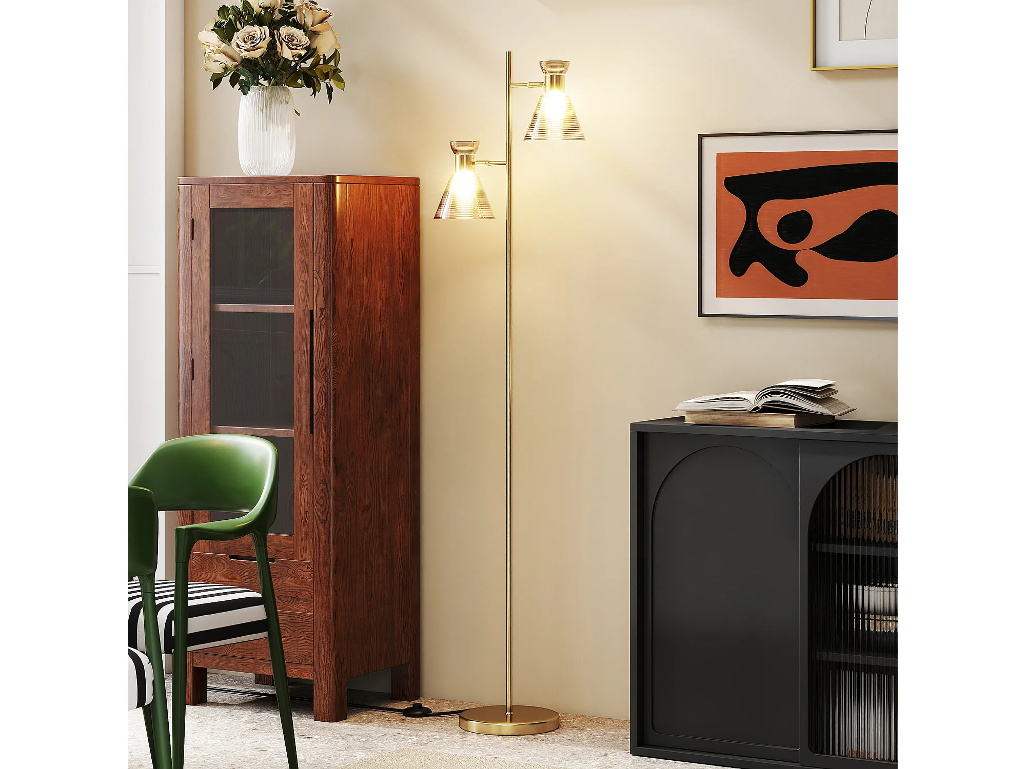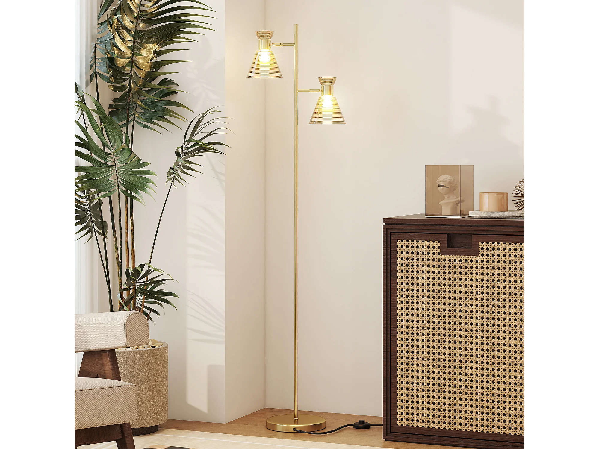 lampada da terra con 2 punti luce regolabili