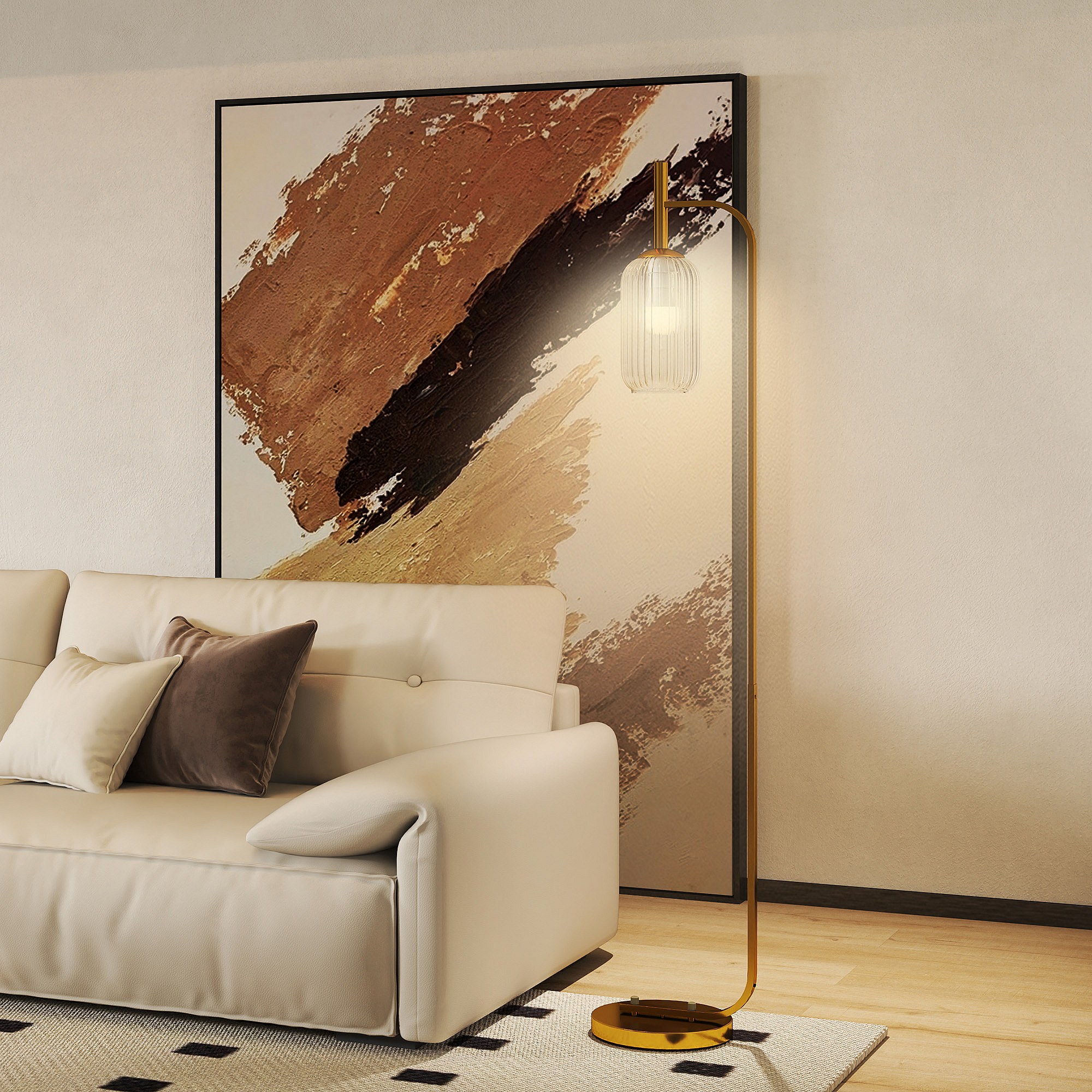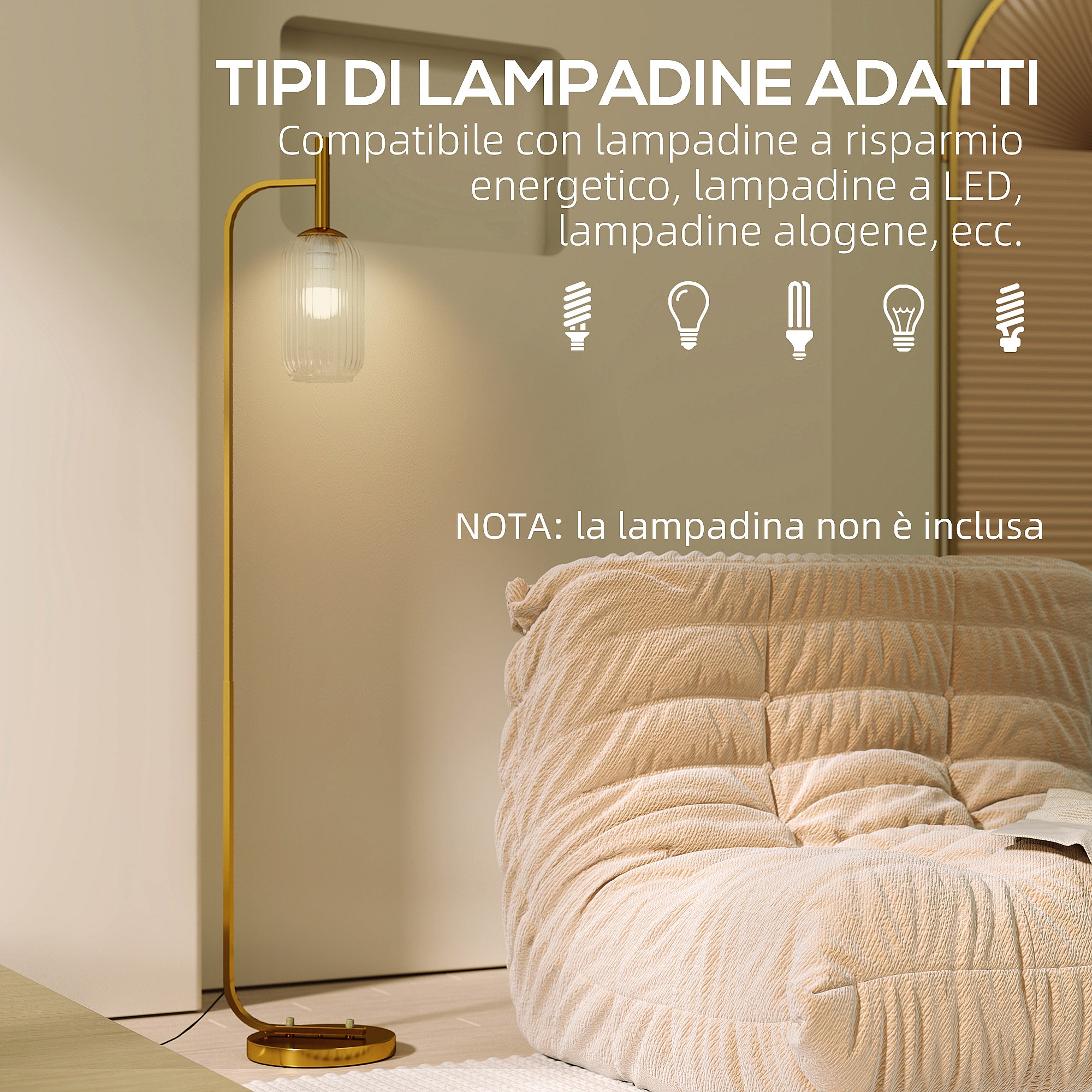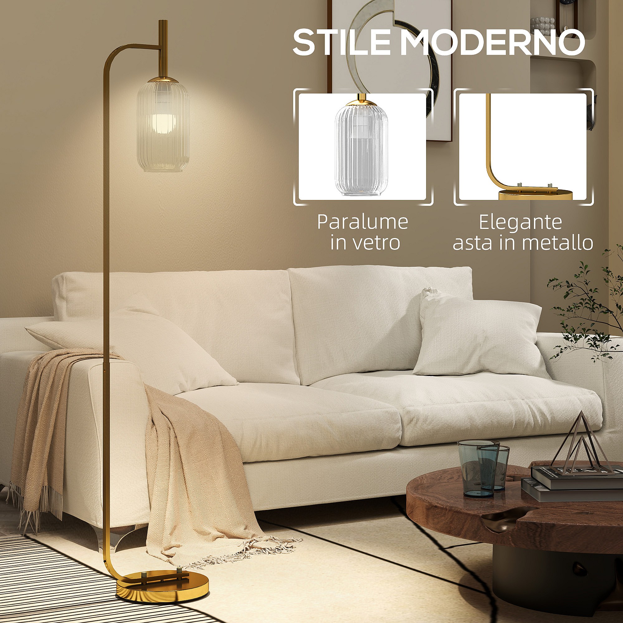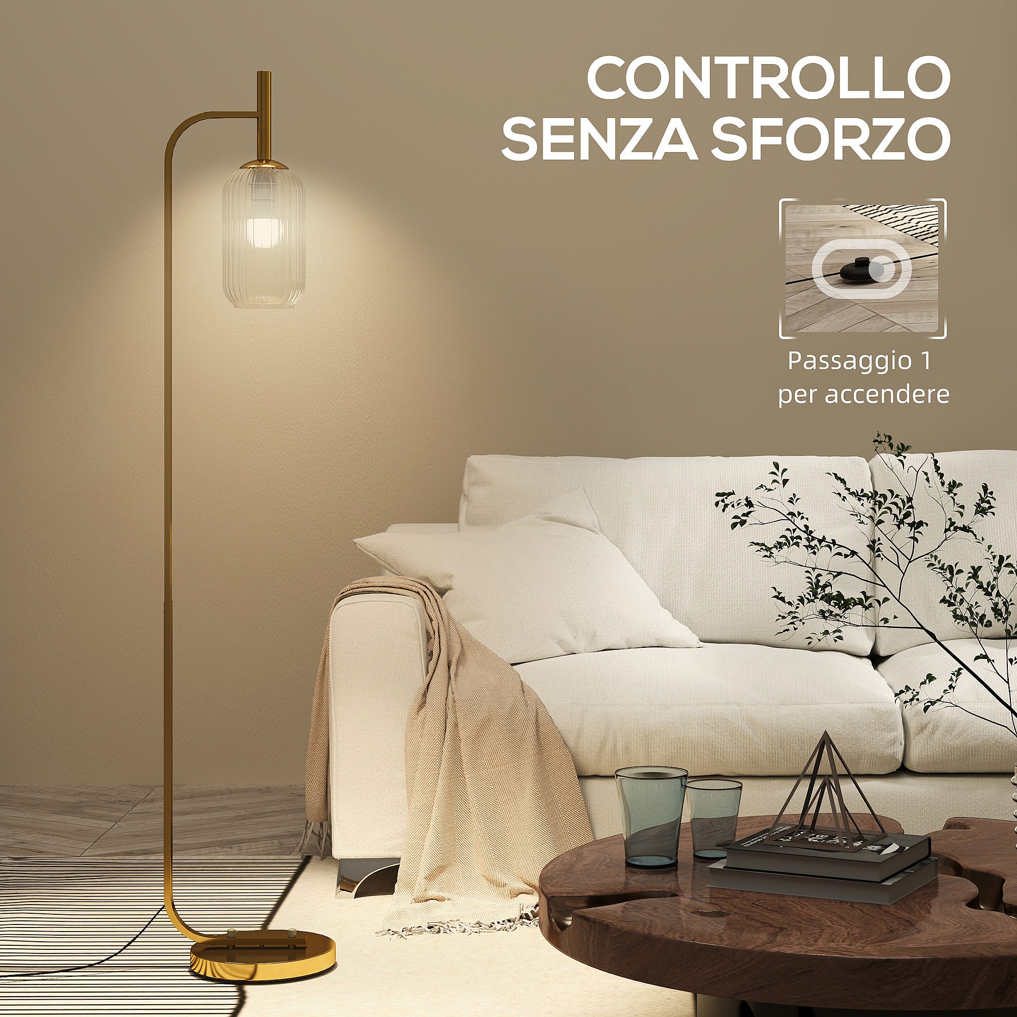 Lampada da terra con interruttore a pedale e paralume in vetro oro