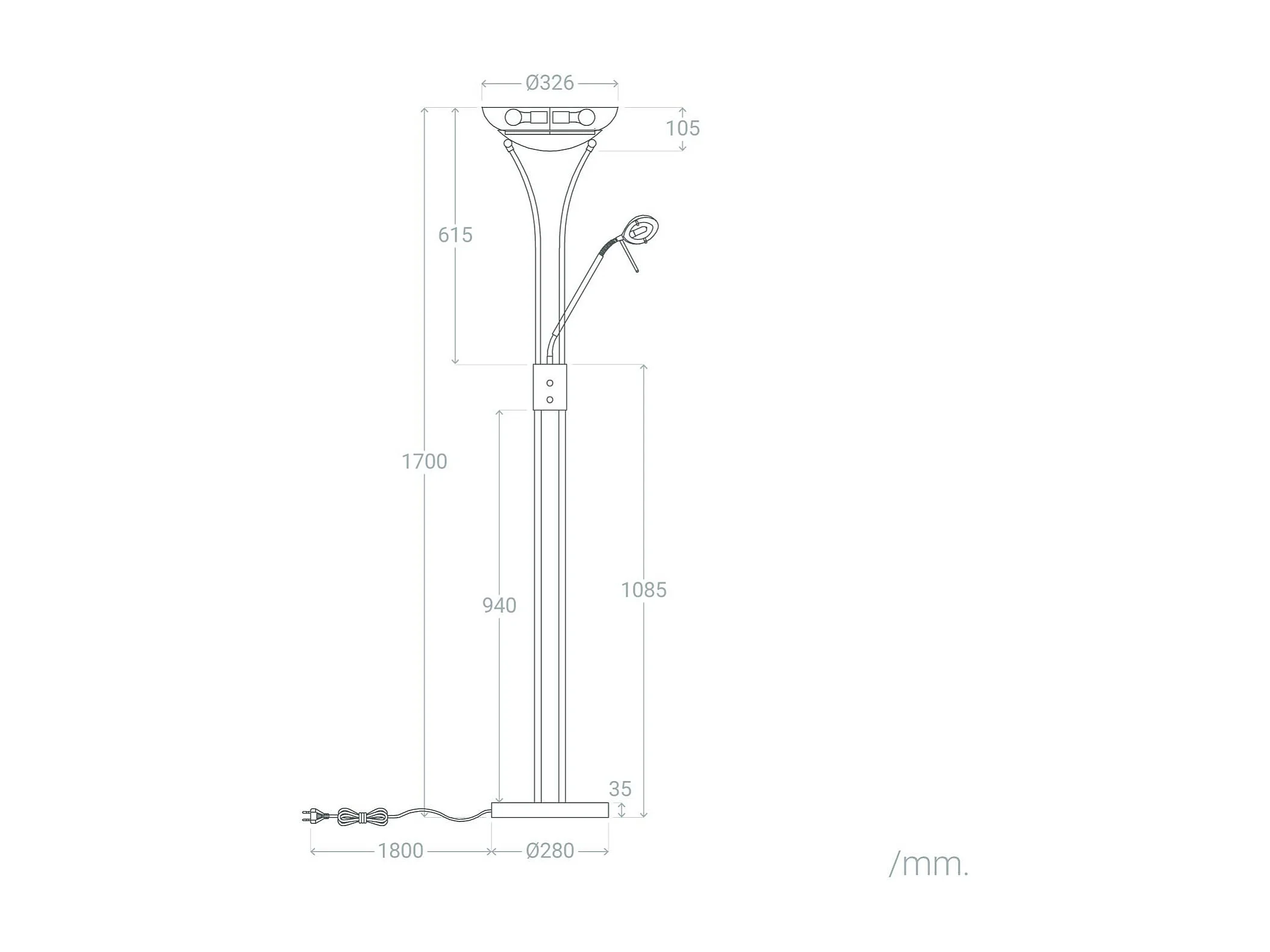 Lampada da Terra con Luce da Lettura Metallo Ethan Argento