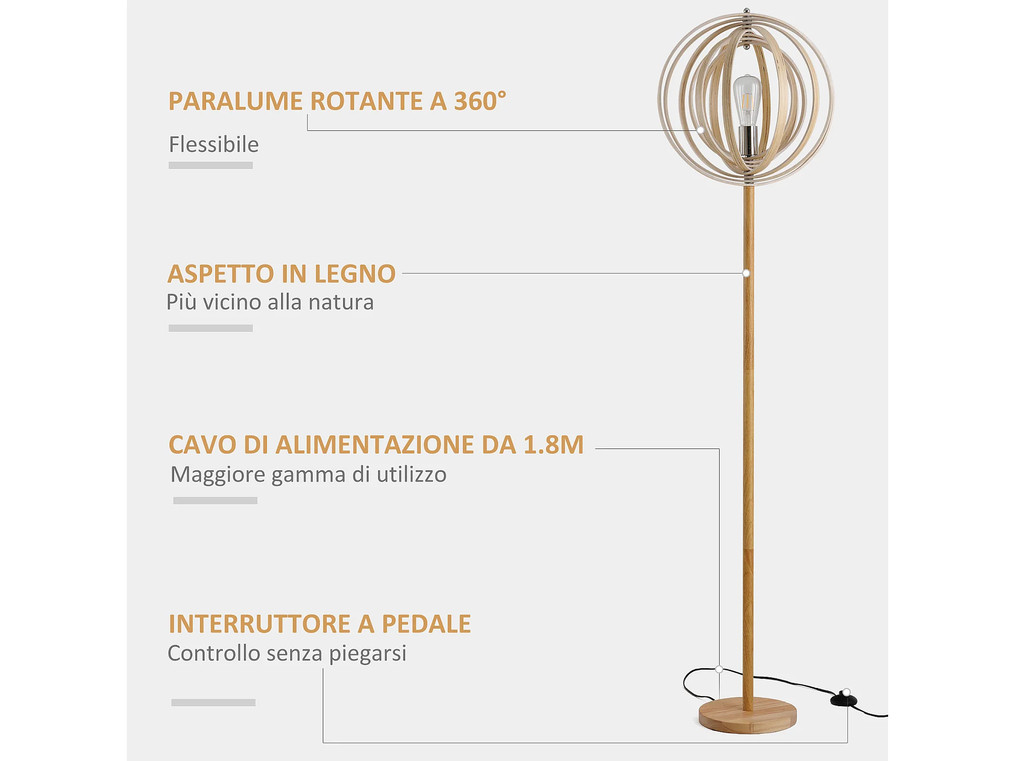 Lampada da terra con paralume regolabile per lampadine e27 in legno