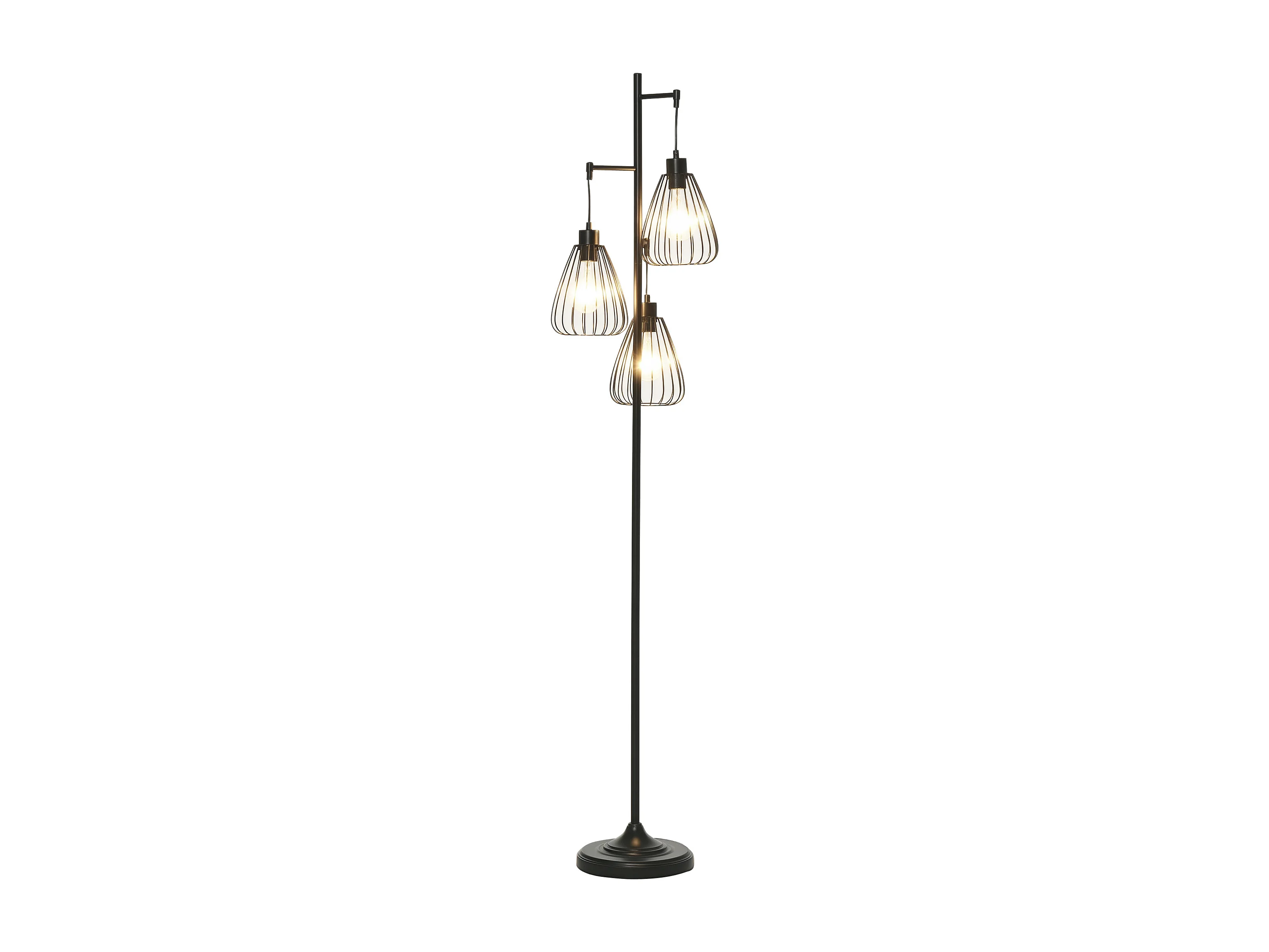 Lampada da terra con 2 punti luce regolabile e con telecomando nero