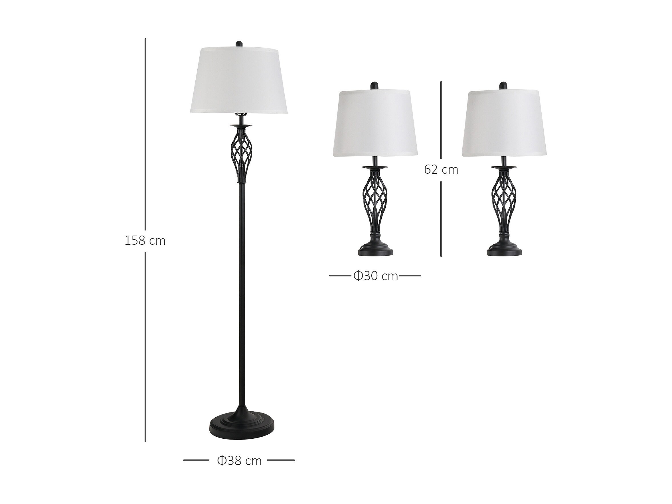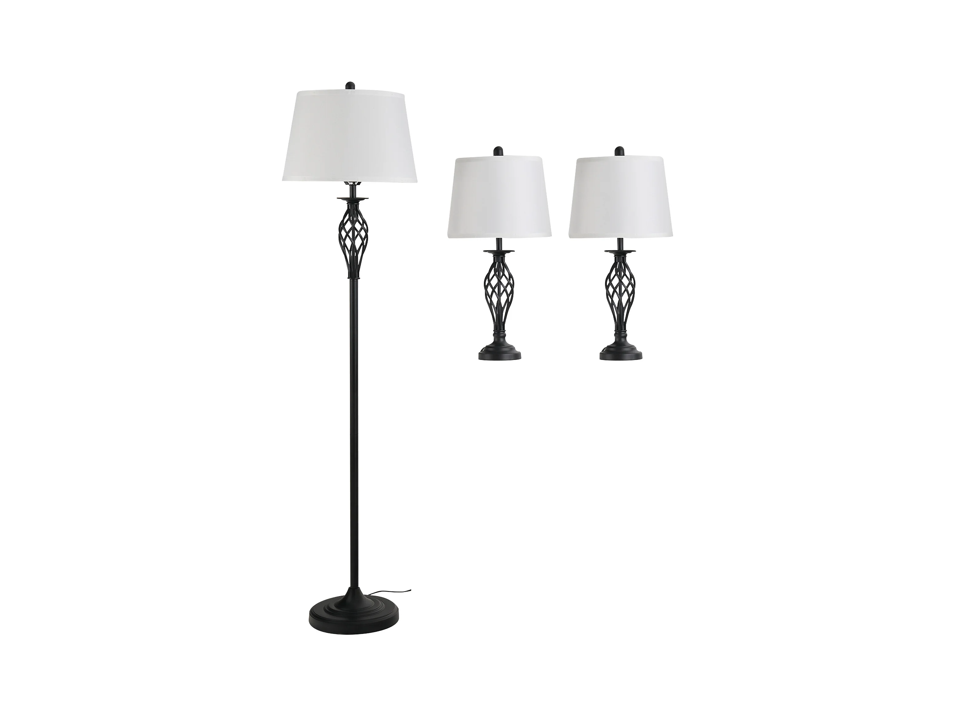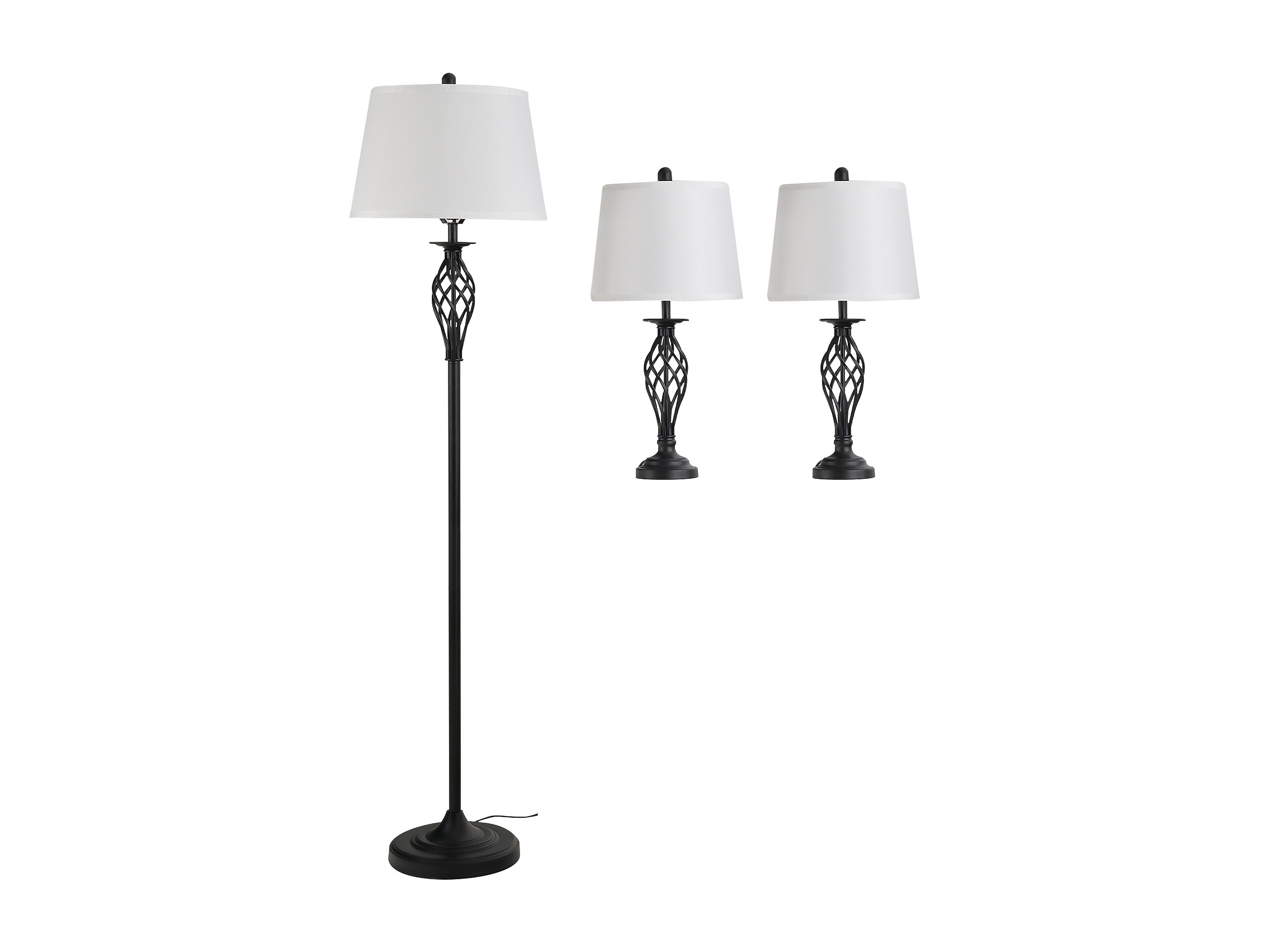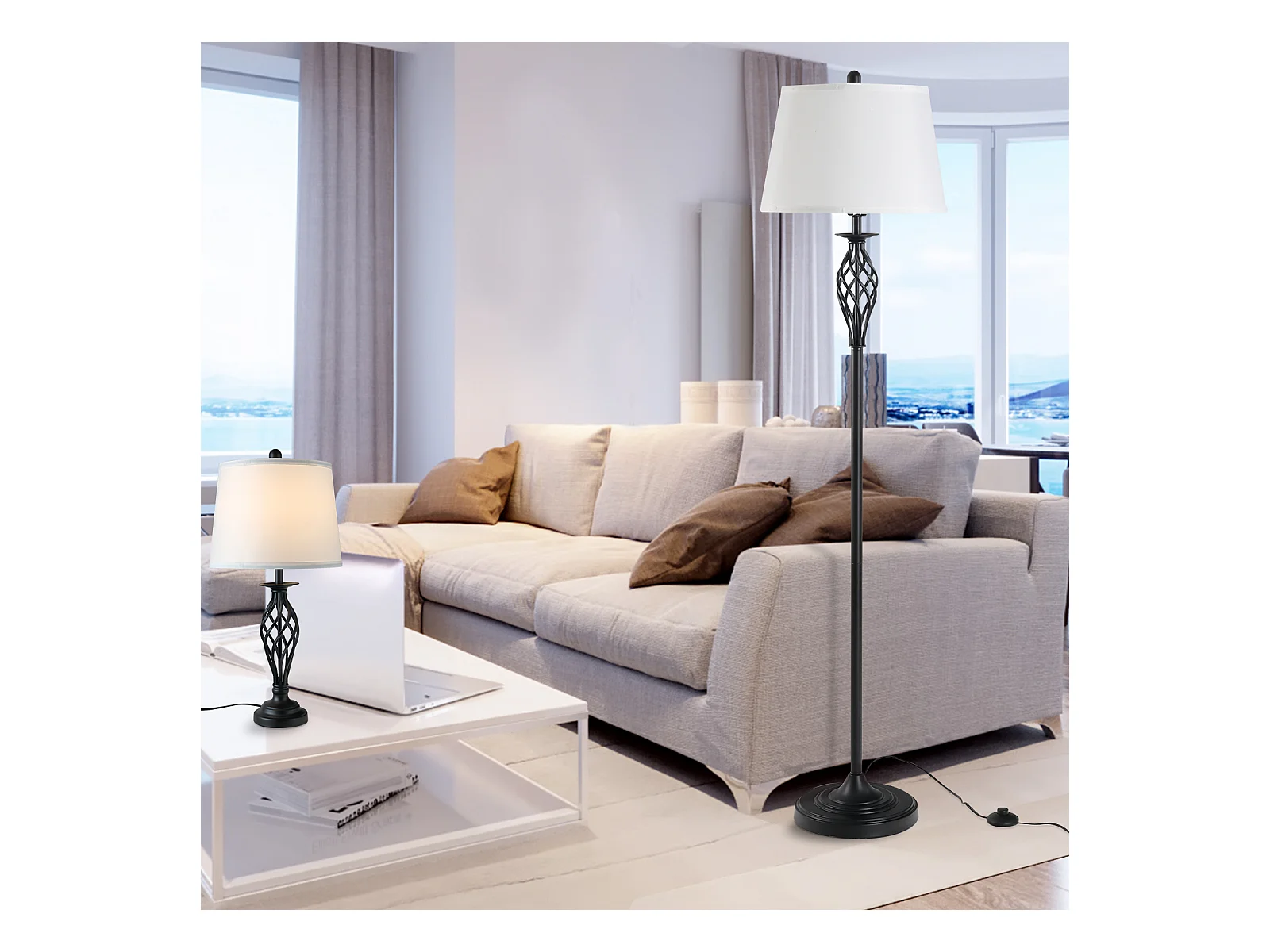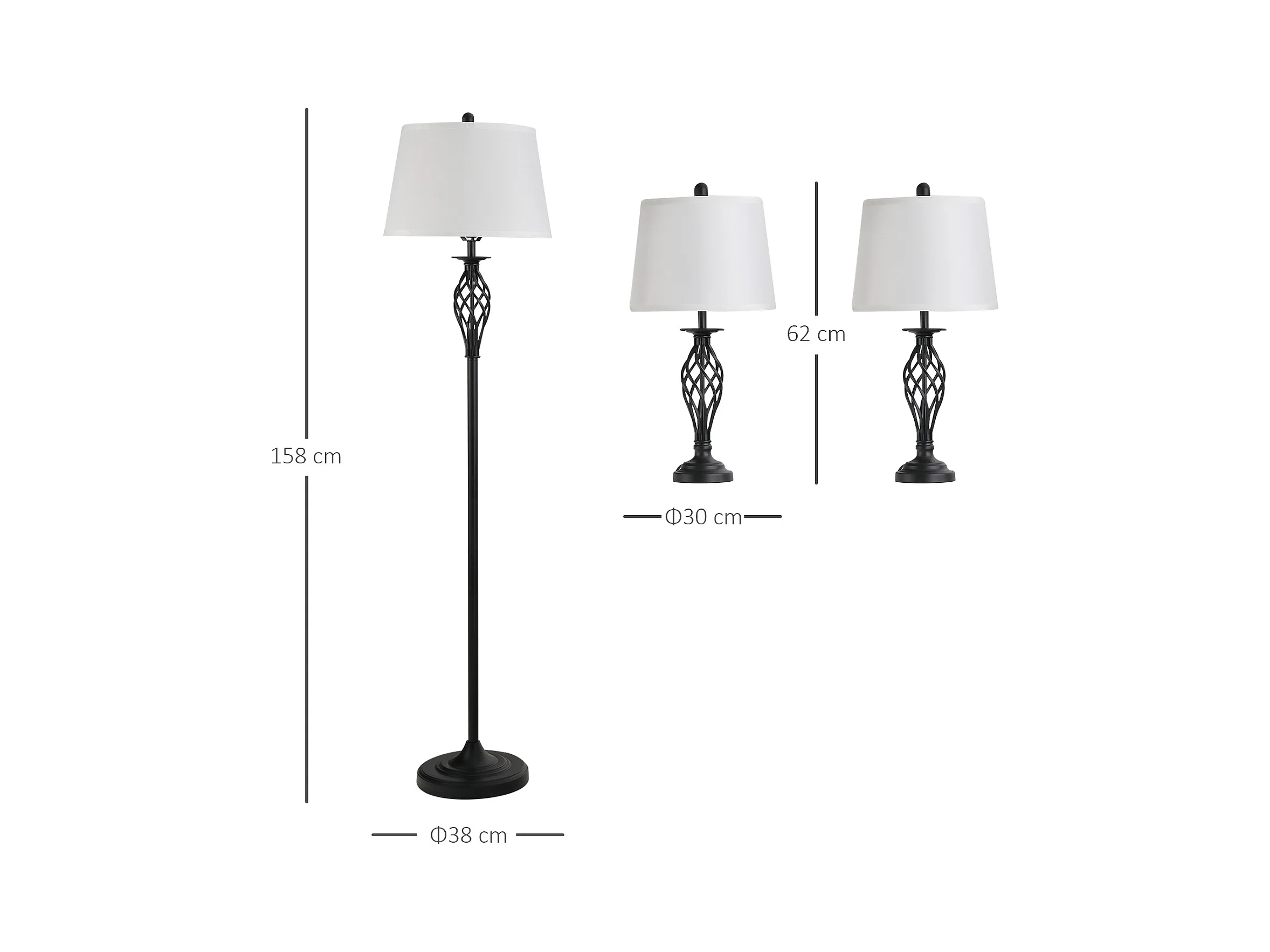Lampada da terra e 2 lampade da tavolo in metallo nero e bianco