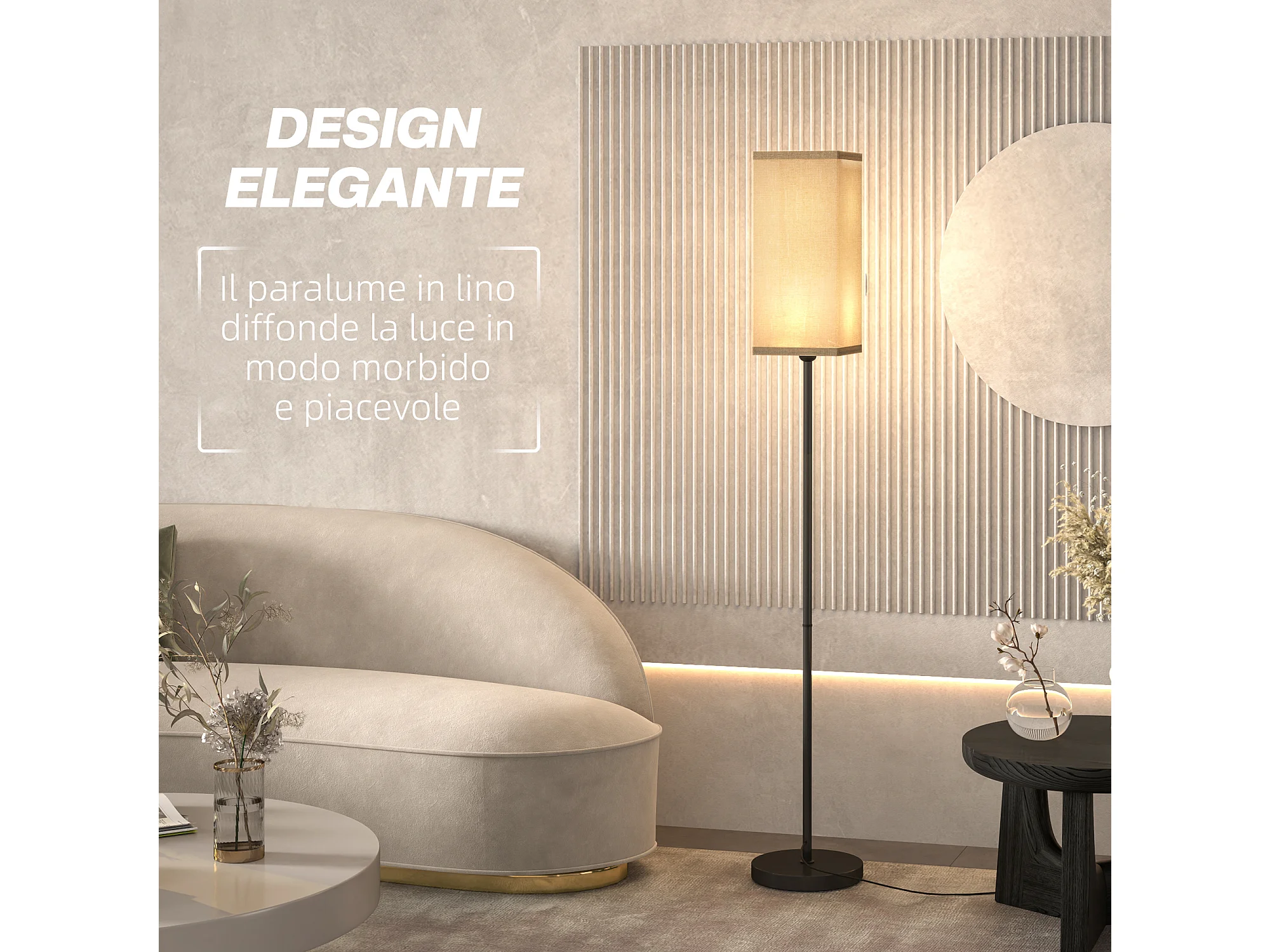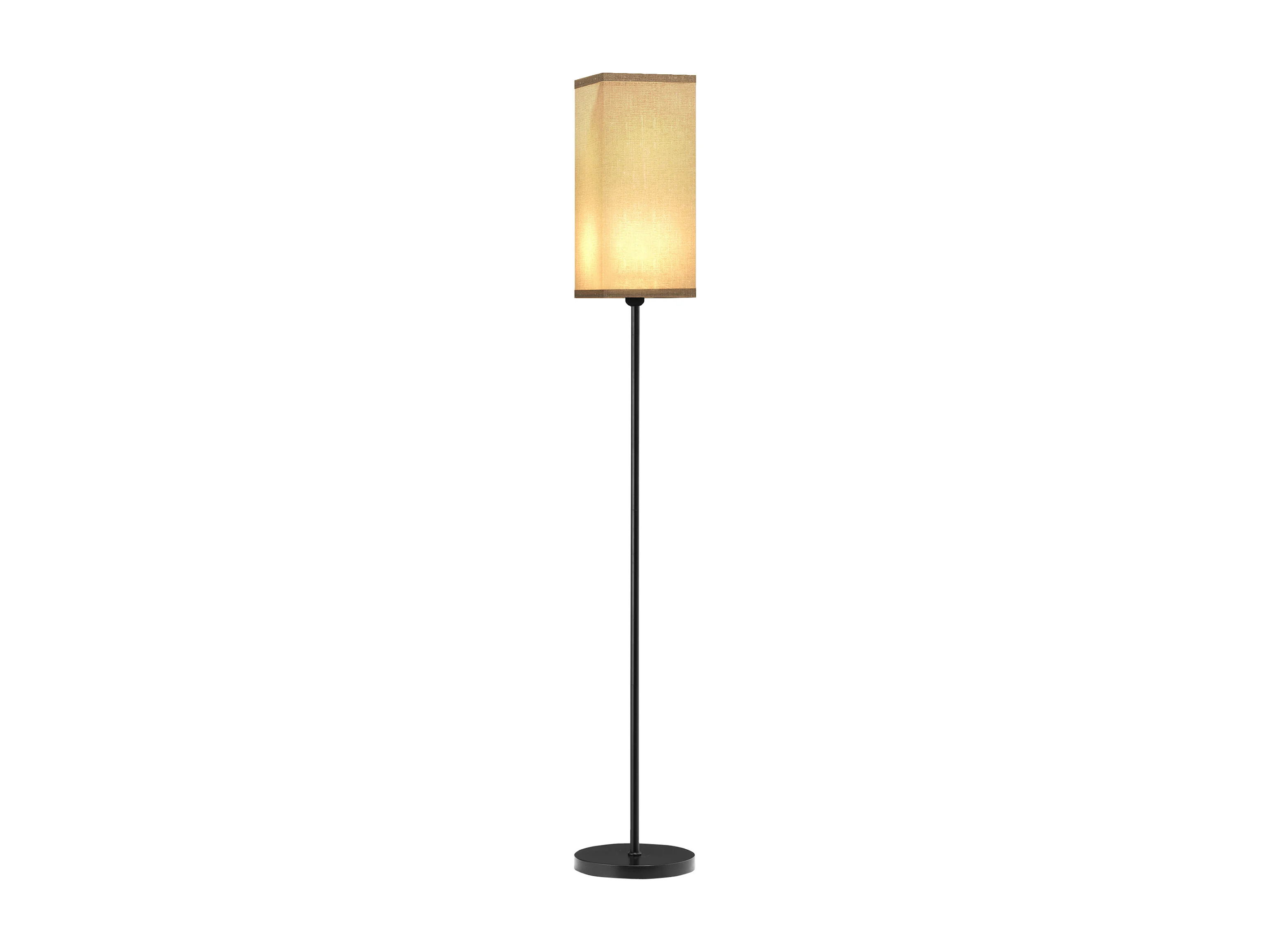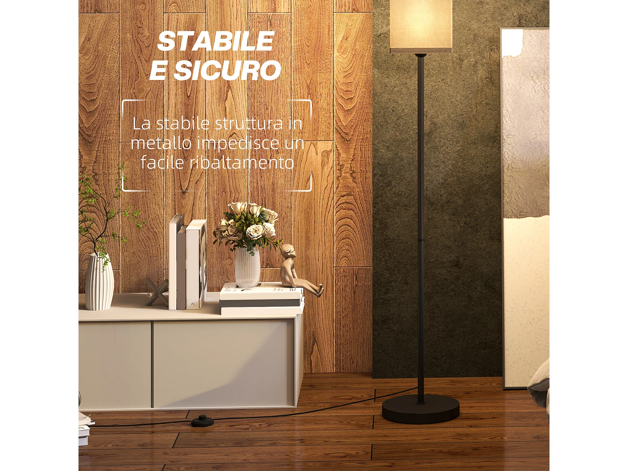 Lampada da terra con paralume in tessuto e base in metallo nera