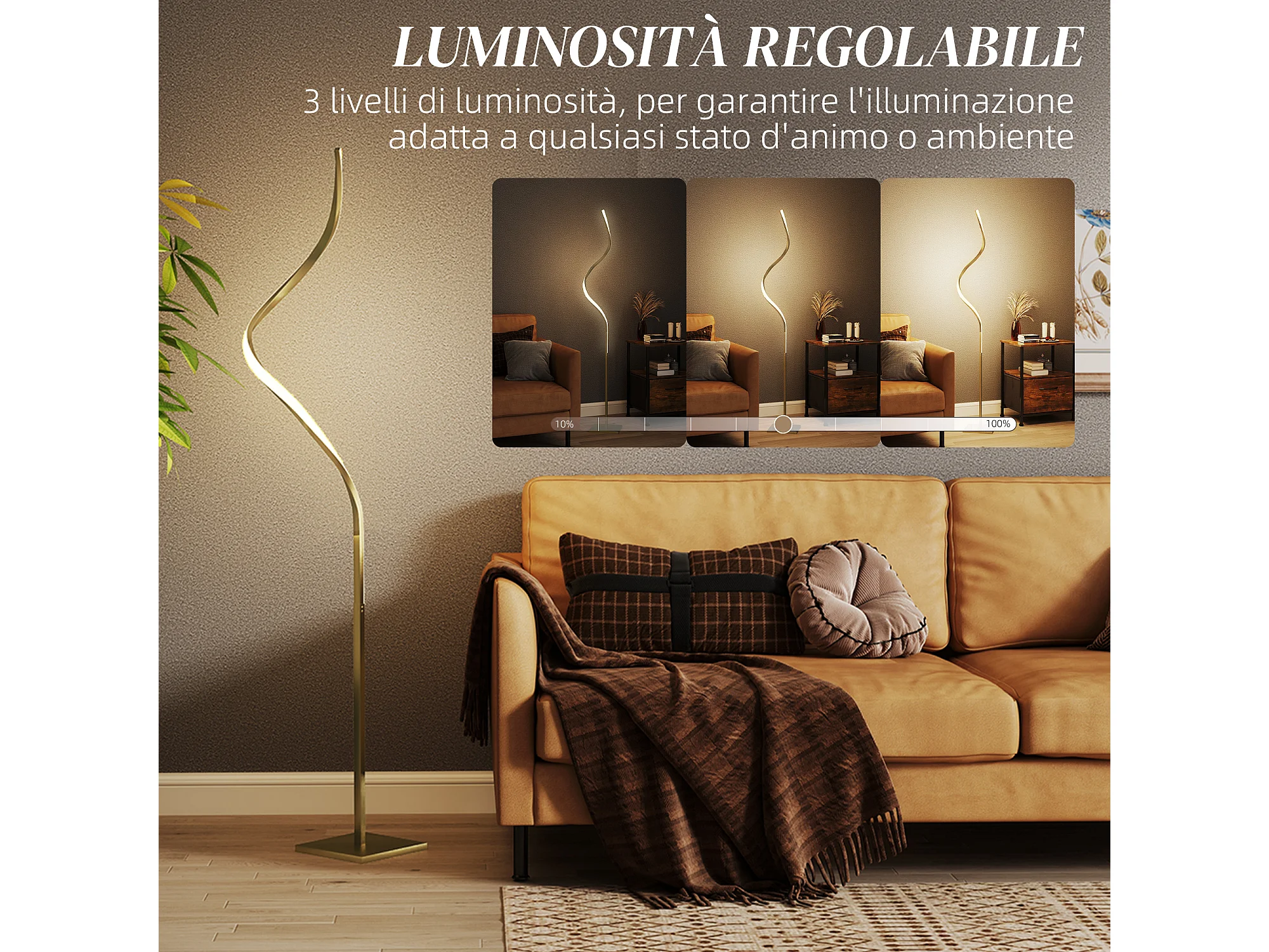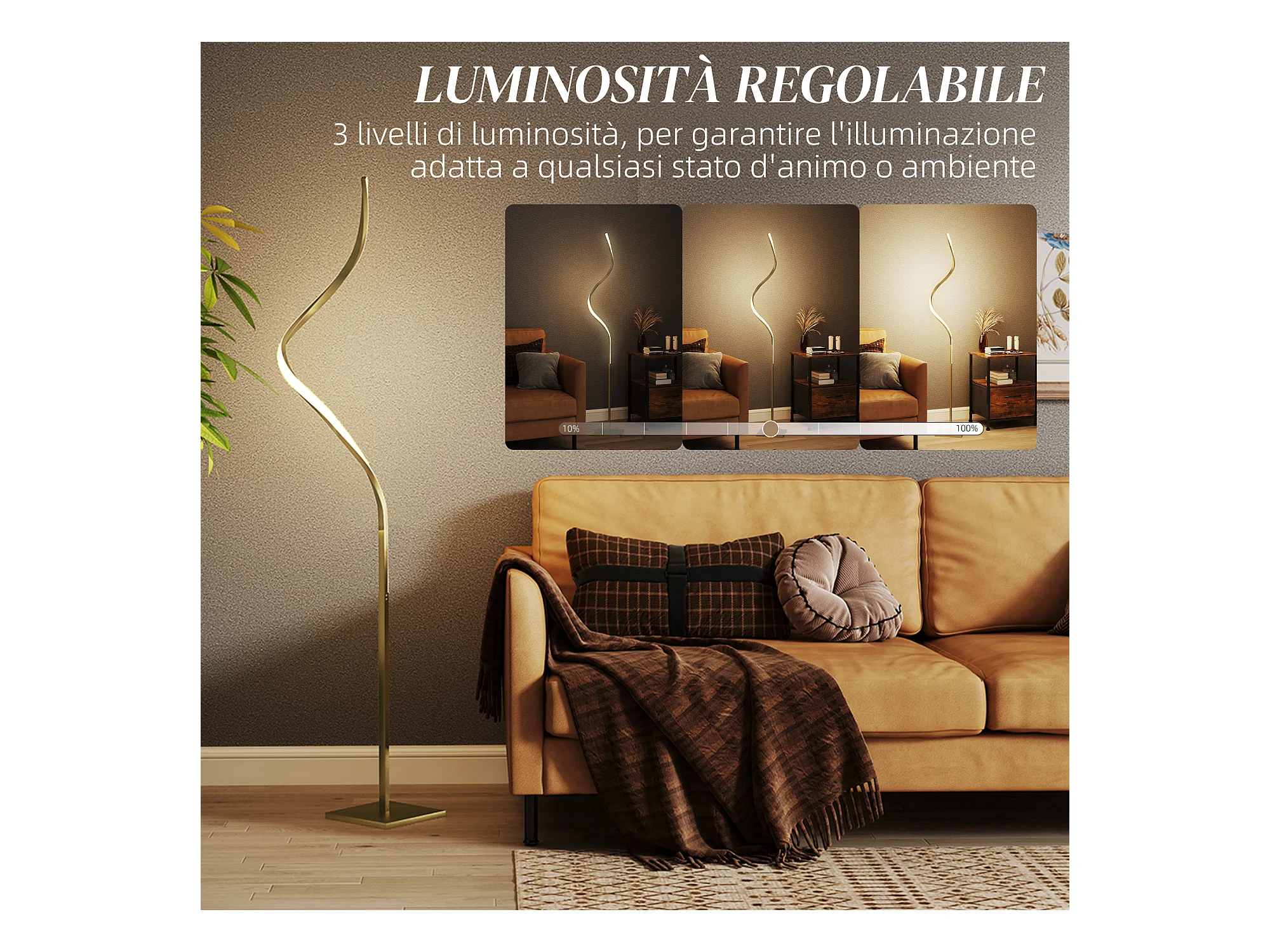 Lampada da terra led a spirale con 3 luminosità regolabili oro