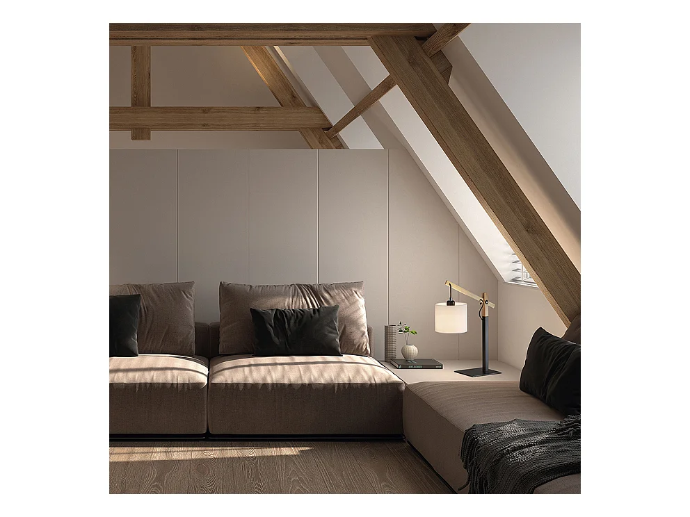 Lampada da terra moderna Akiro-h.72 cm-2x led T8-9w,3k-ip20-on&off-acciaio-nero,lino