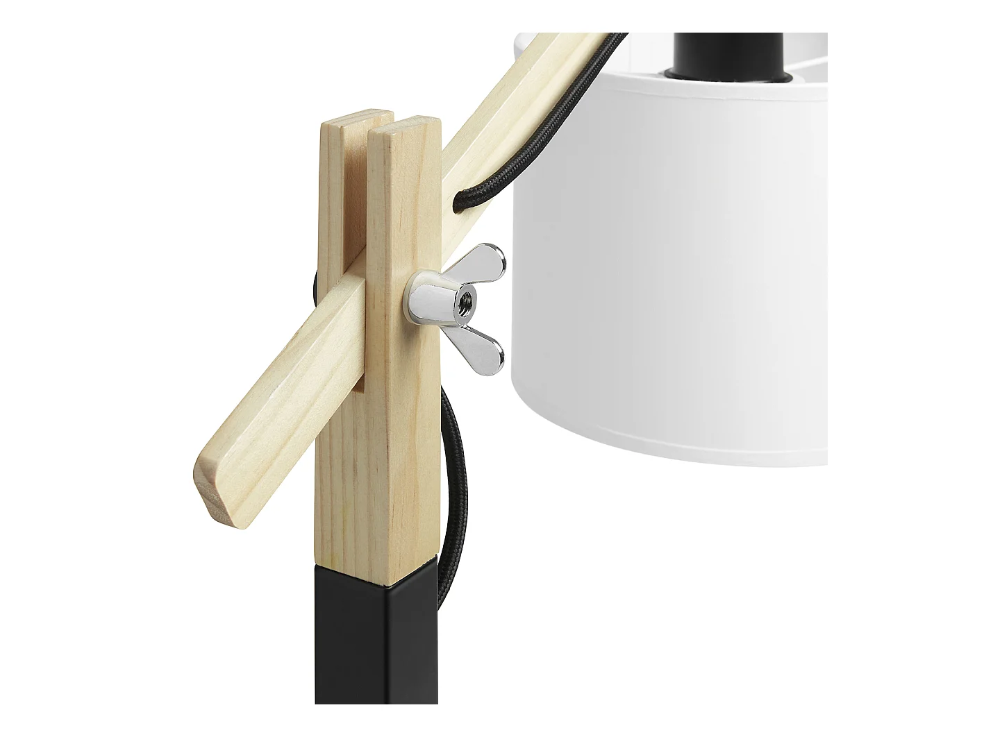 Lampada da terra moderna Britta-h.128 cm-e27 60w-90º-on&off-acciaio,legno-nero,bianco