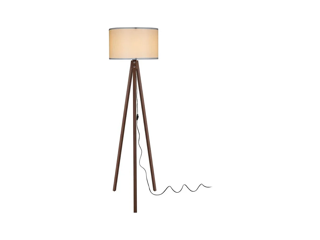 Lampada da terra treppiede noce con paralume tessuto crema Aden ASZ1460