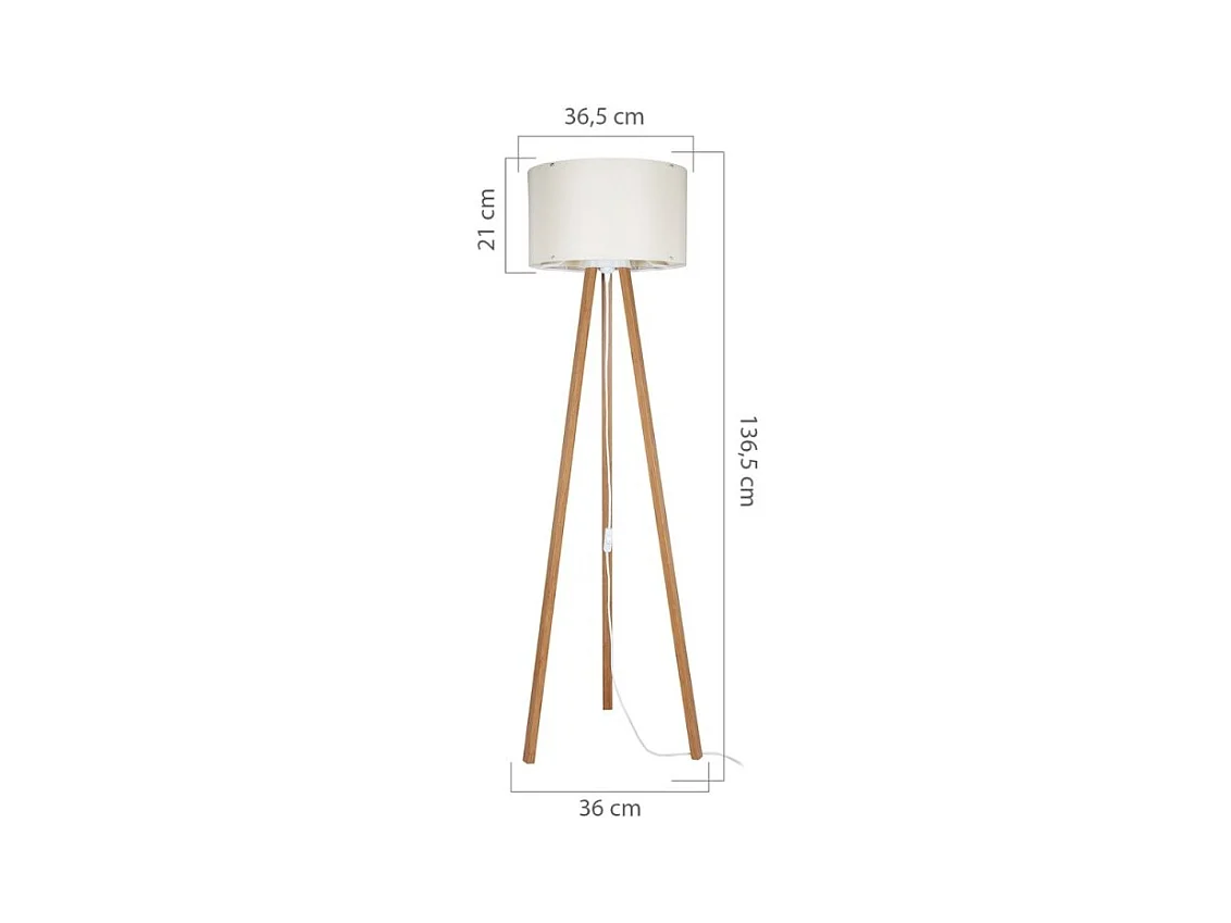 Lampada da terra treppiede rovere con paralume tessuto crema Piko ASZ1664