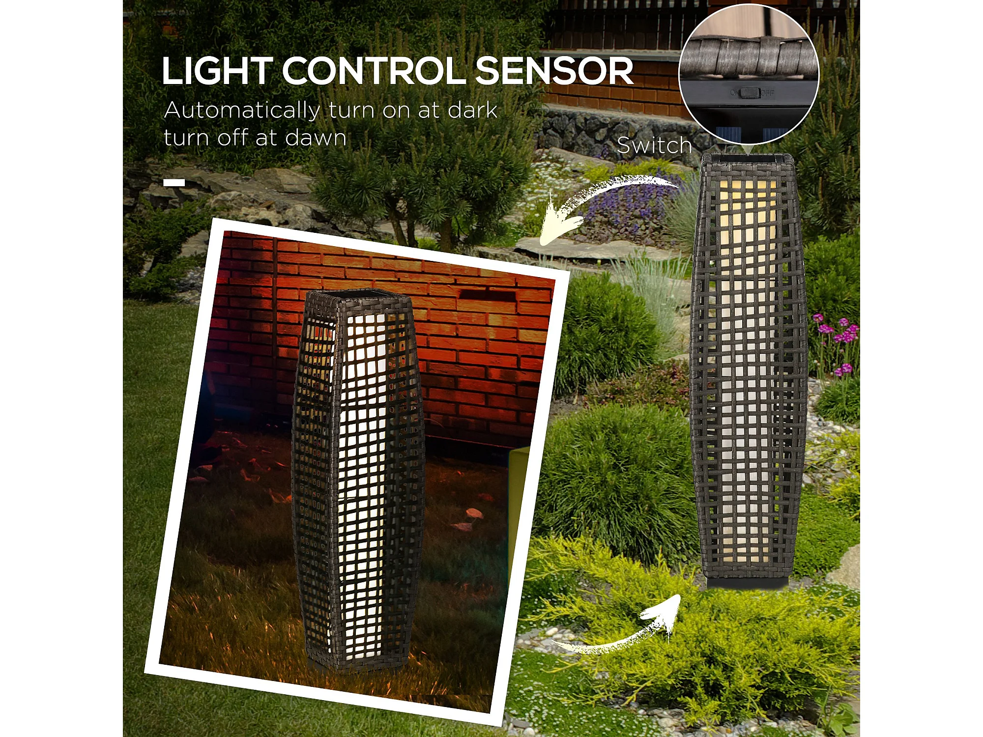 Lampada solare da giardino in acciaio e rattan nero e grigio