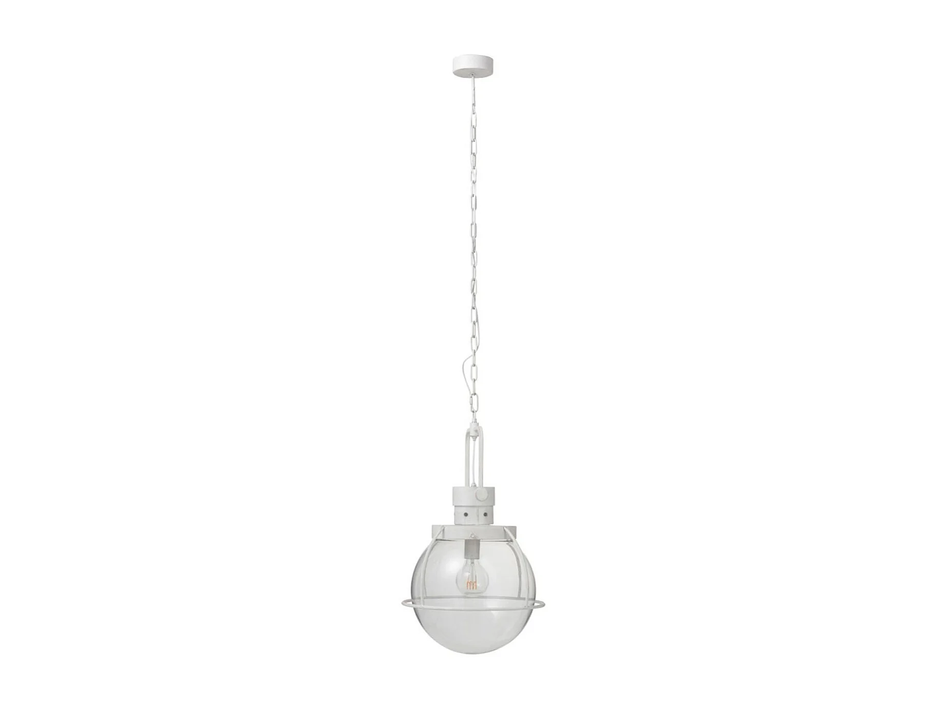 Lampada sospesa a sfera in vetro e metallo bianco 40*180 cm