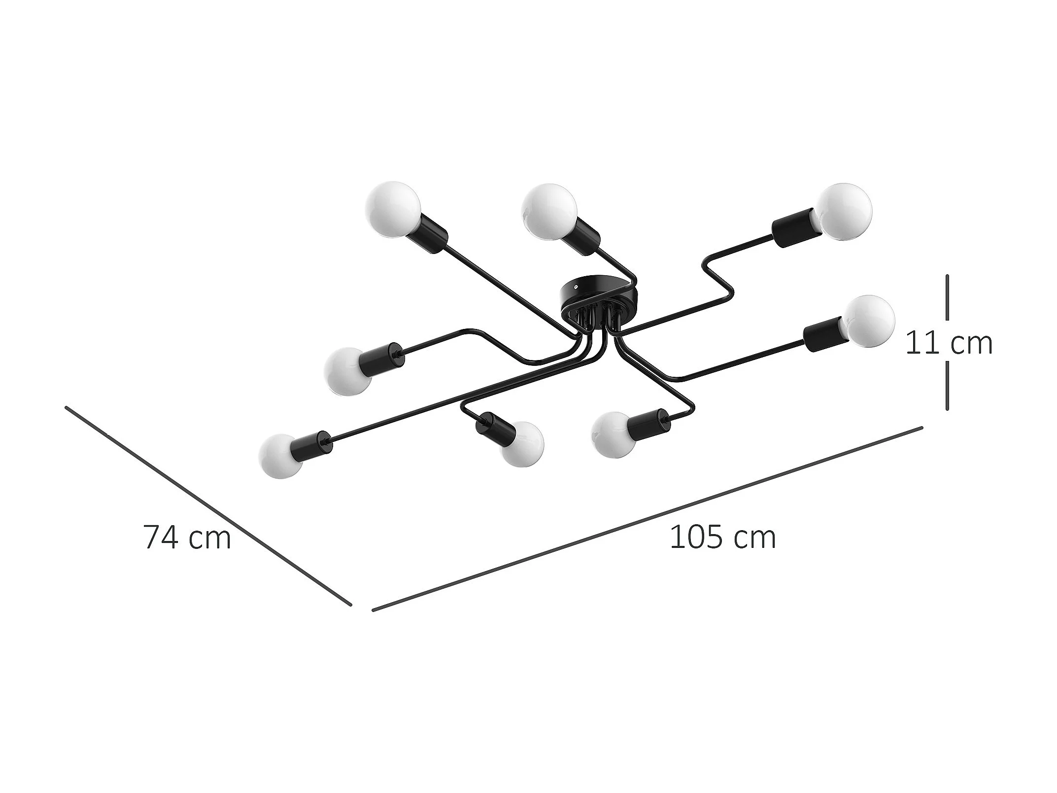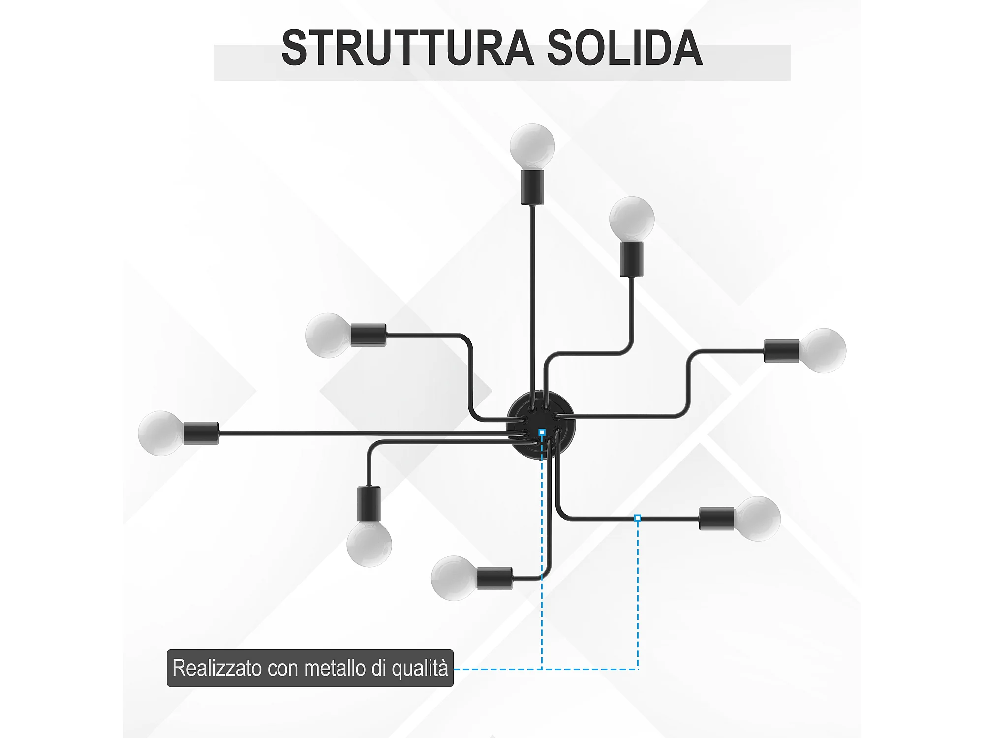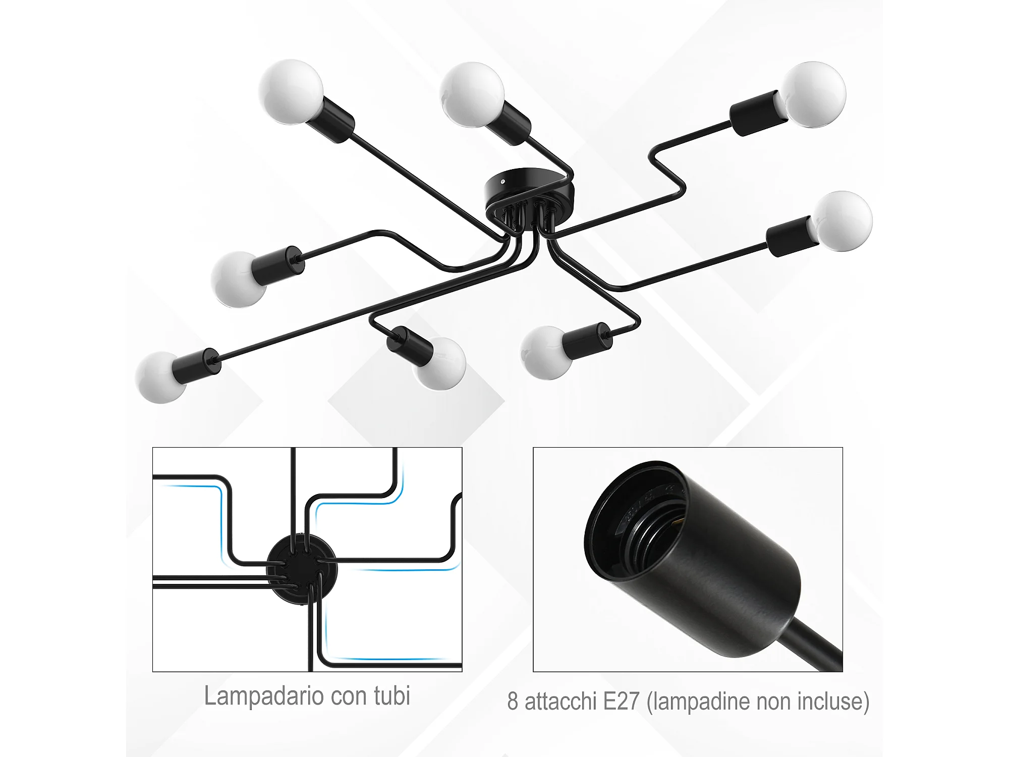 Lampadario a soffitto moderno 8 punti luce in metallo nero