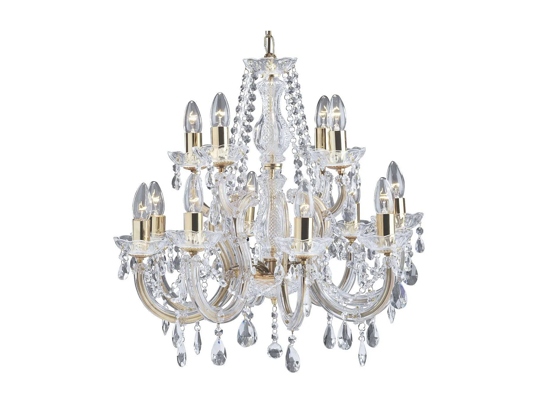 Lampadario Classico Marie Therese Acciaio Oro Vetro Trasparente 12 Luci E14