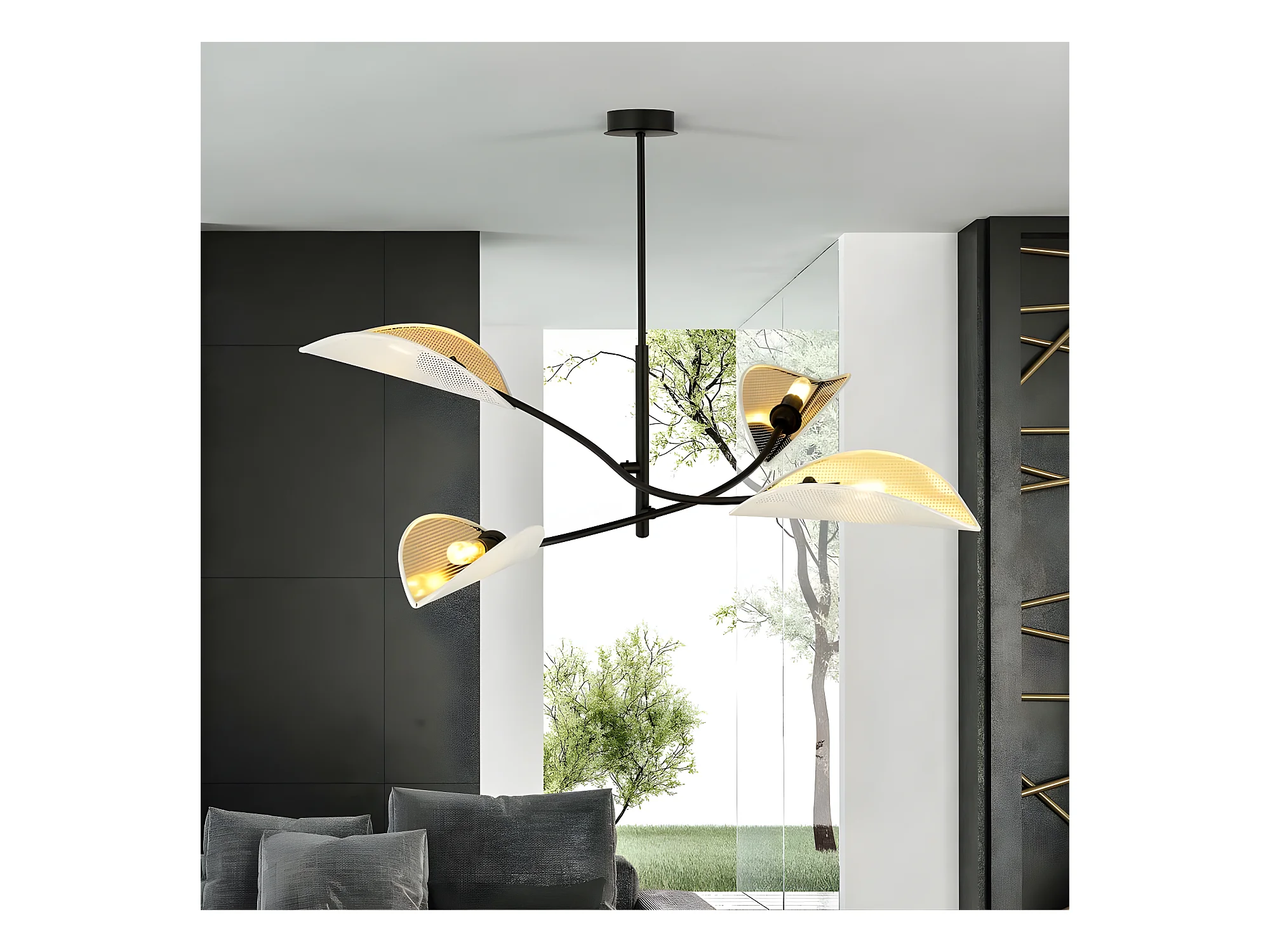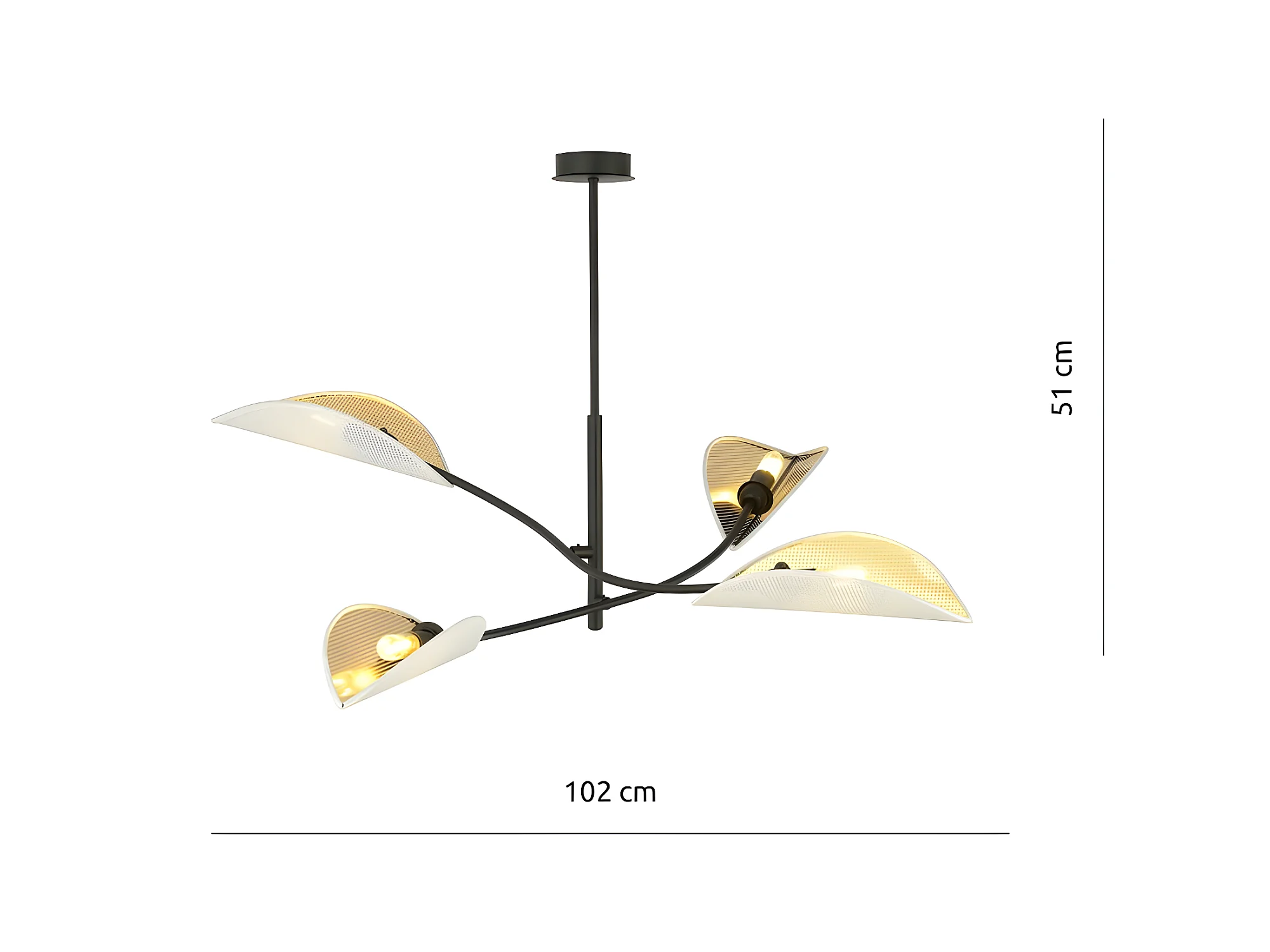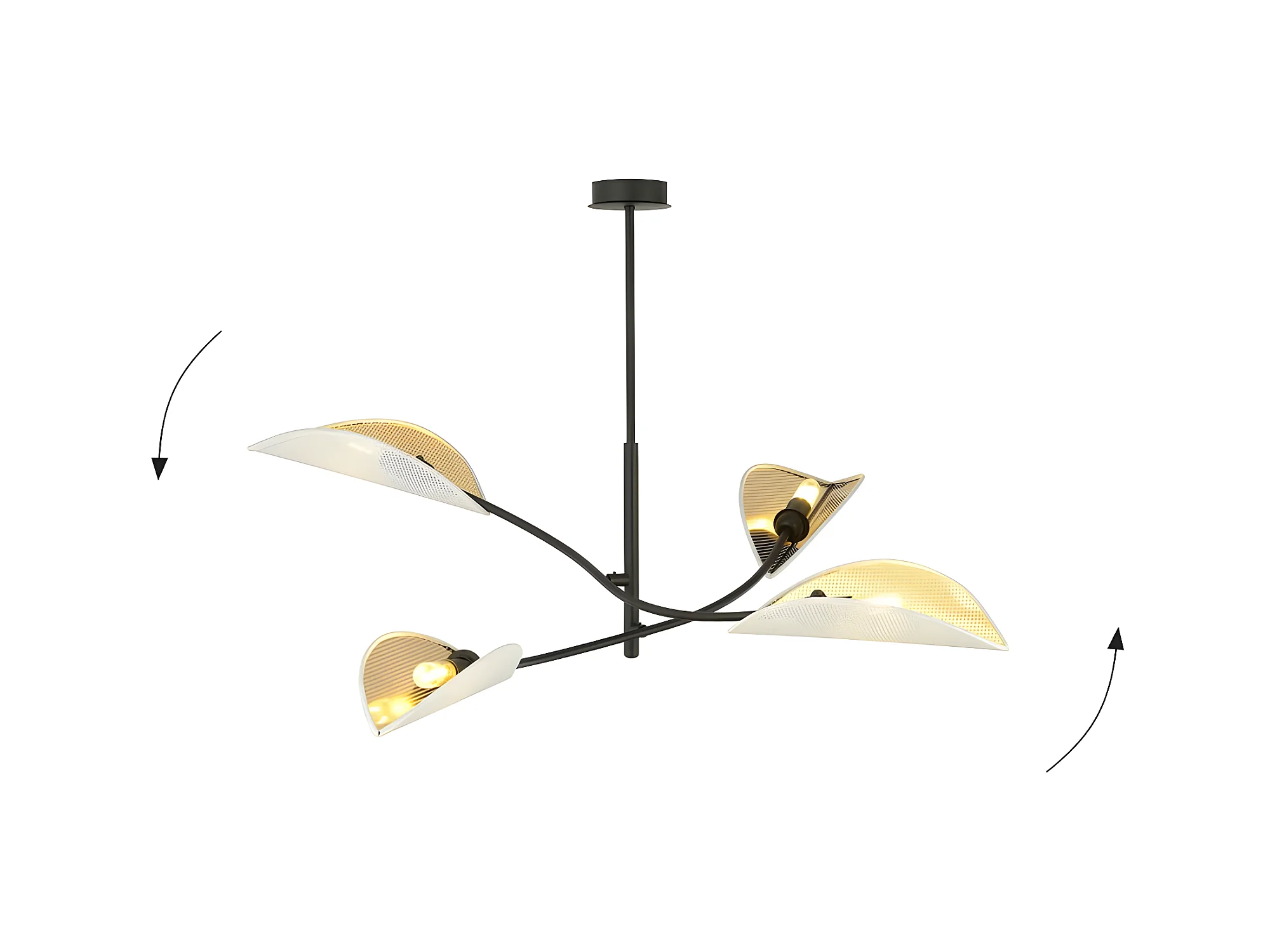 Lampadario Flik con 4 paralumi in tessuto a forma di foglia bianco e dorato 4xE14 ø102