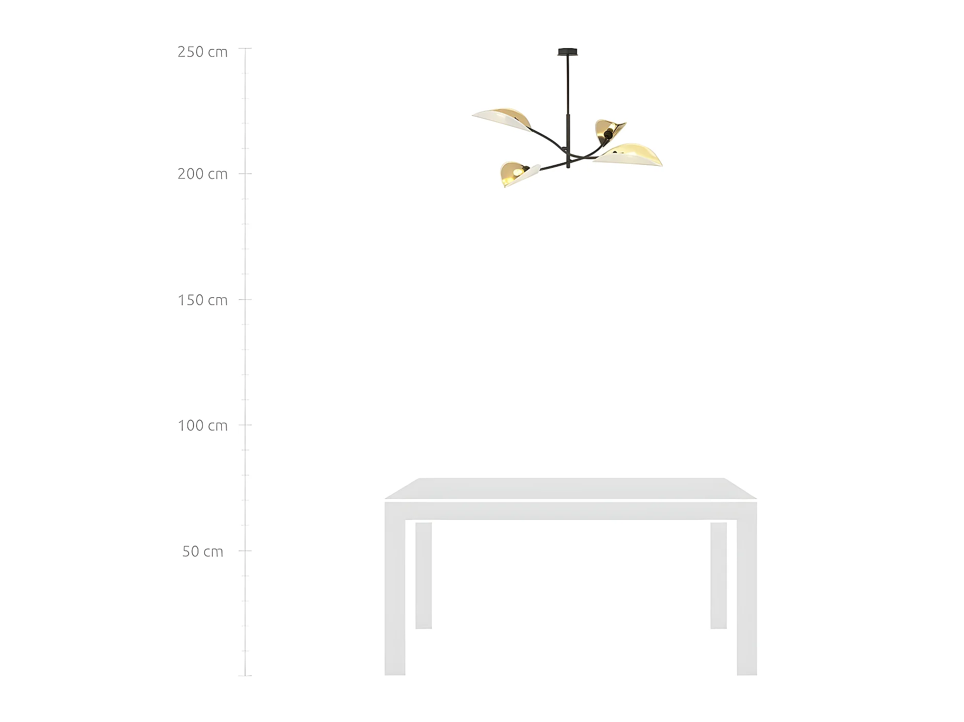 Lampada da soffitto Sives con barre in metallo bianco e 4 portalampade dorati 4xE27 ø70cm