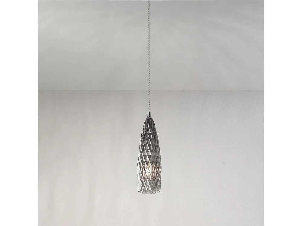 Sospensione Contemporanea Flut Metallo Cromo Vetro Fumè 1 Luce E27