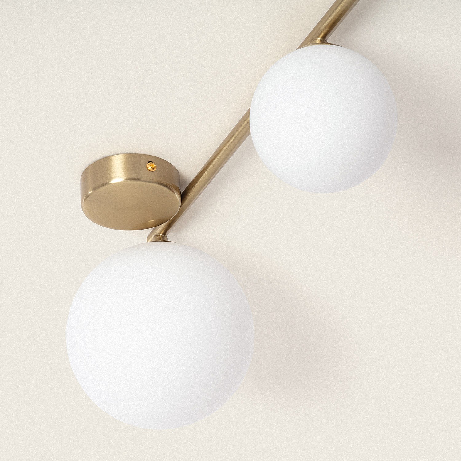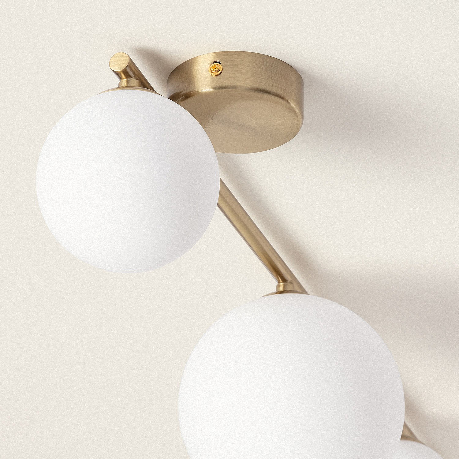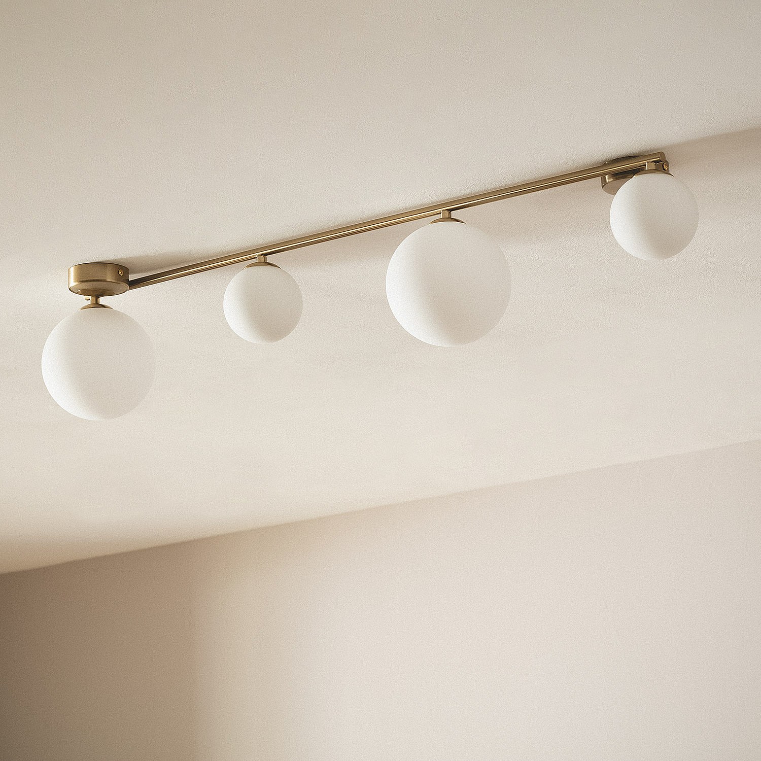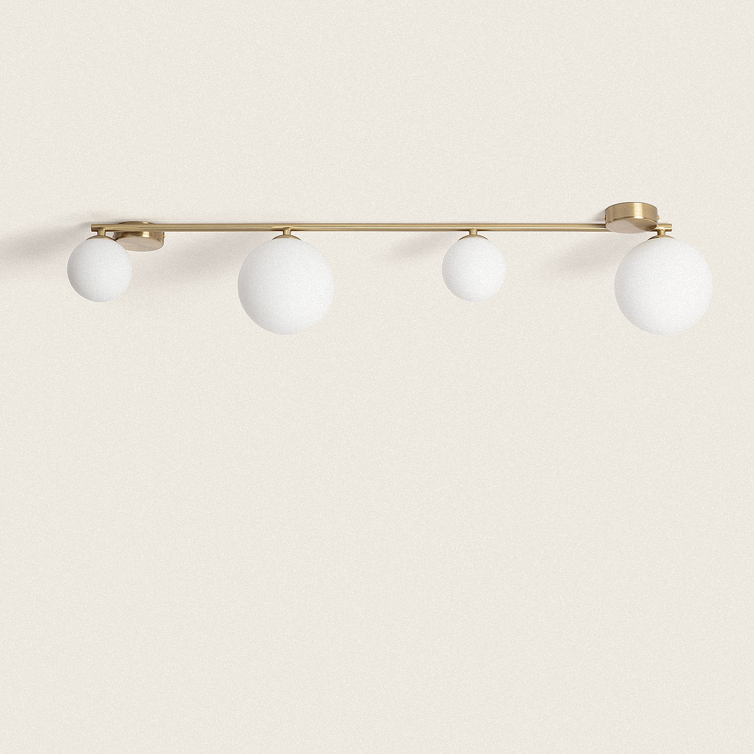 Lampadario in Metallo e Vetro Moonlight Brass 4 punti luce Bianco