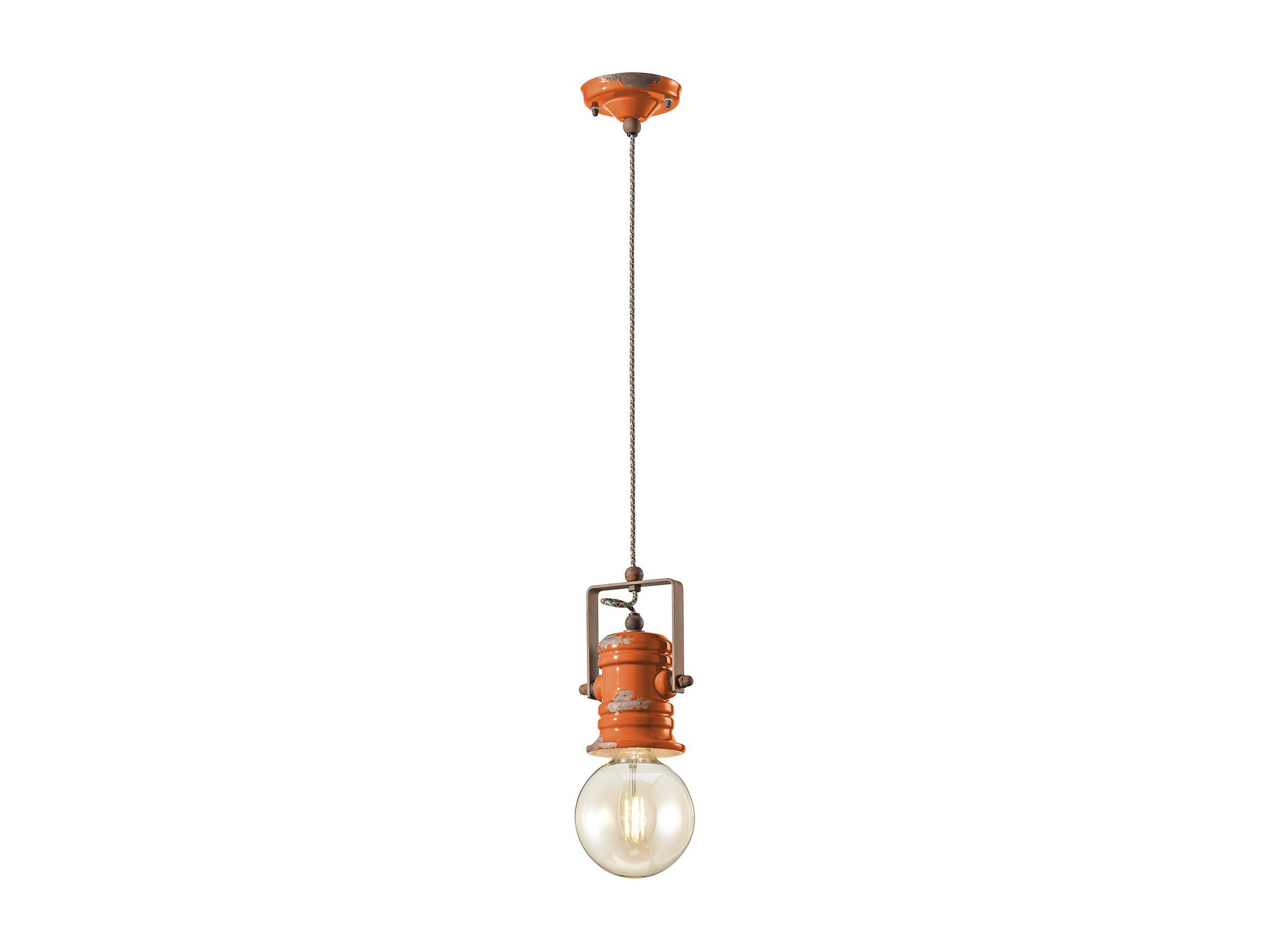 Lampadario Vintage Country Ferro E Ceramica Arancio 1 Luce E27 25Cm