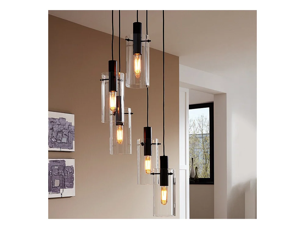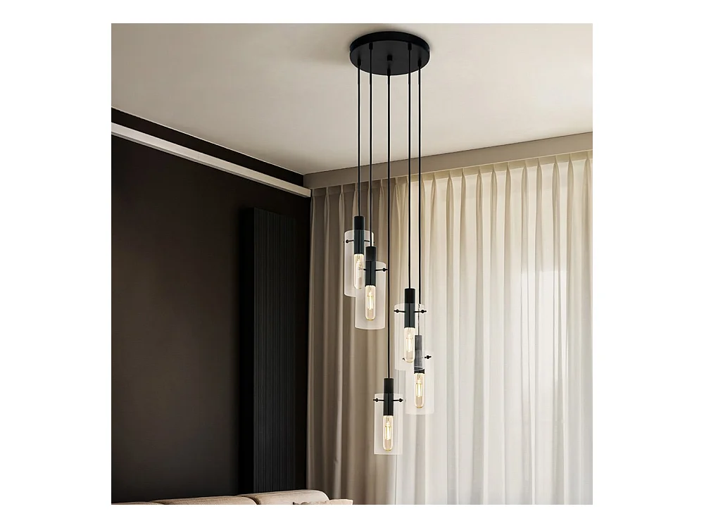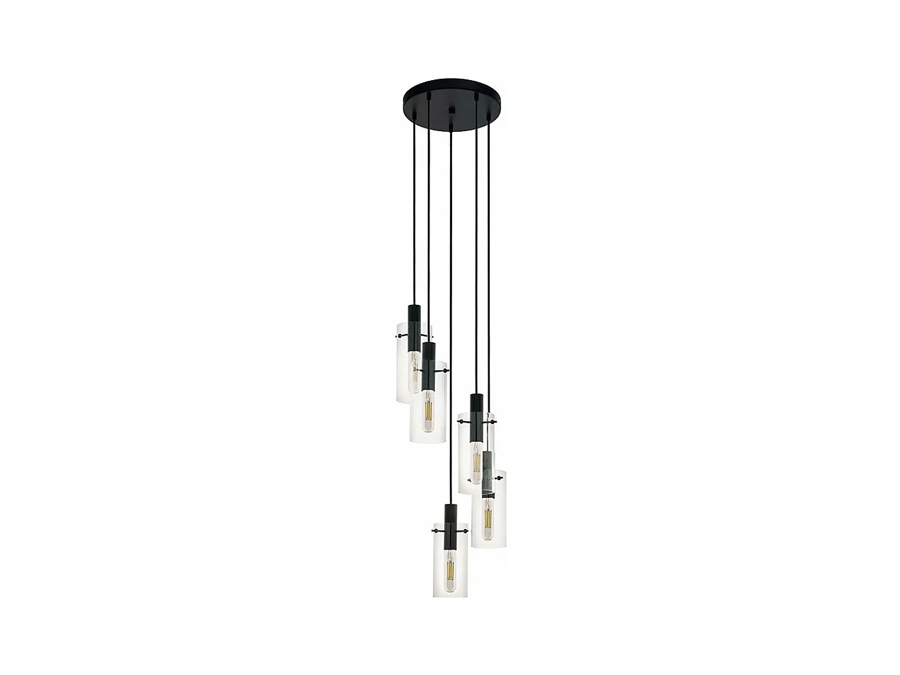 Lampadario Industrial Montefino 5 Luci Acciaio Nero