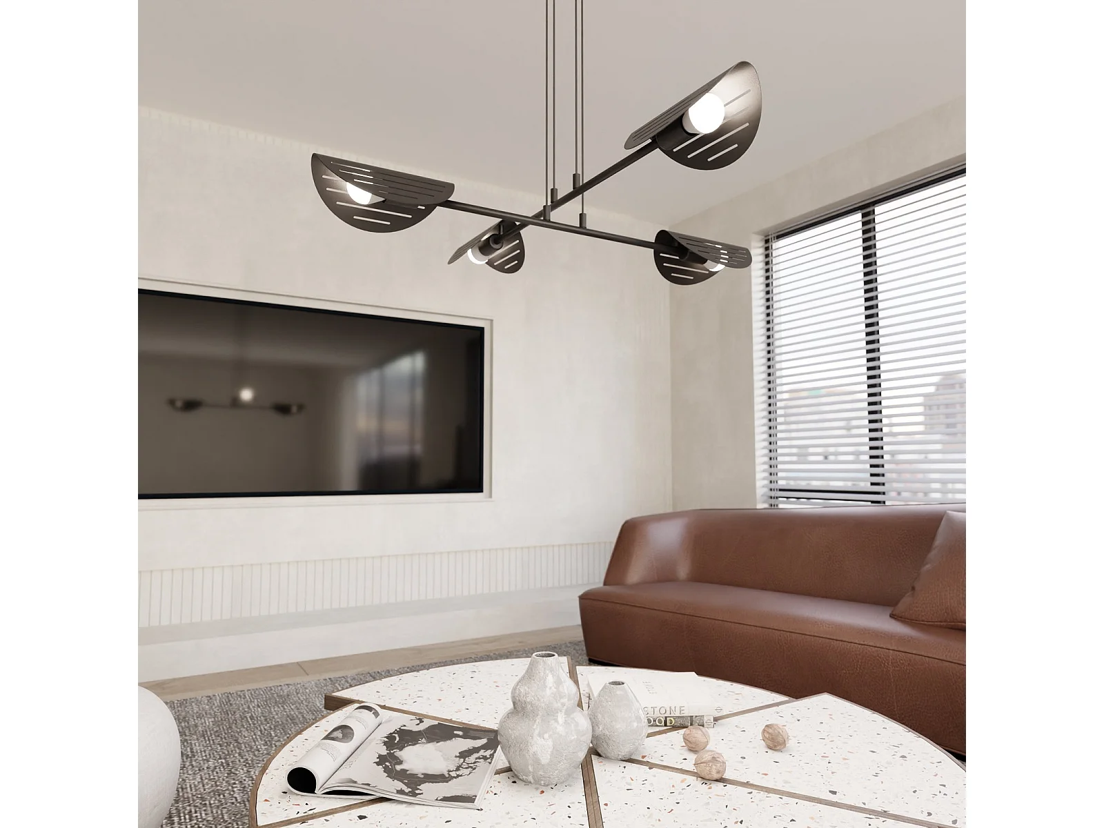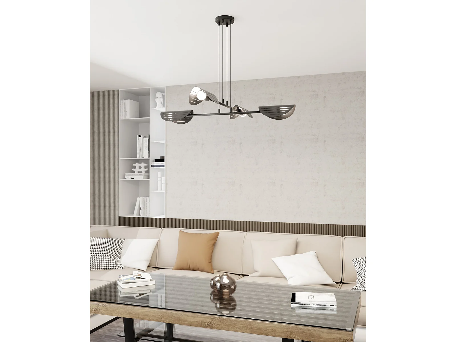 Lampadario Moderno 4 Luci Saber A Bracci In Acciaio Nero