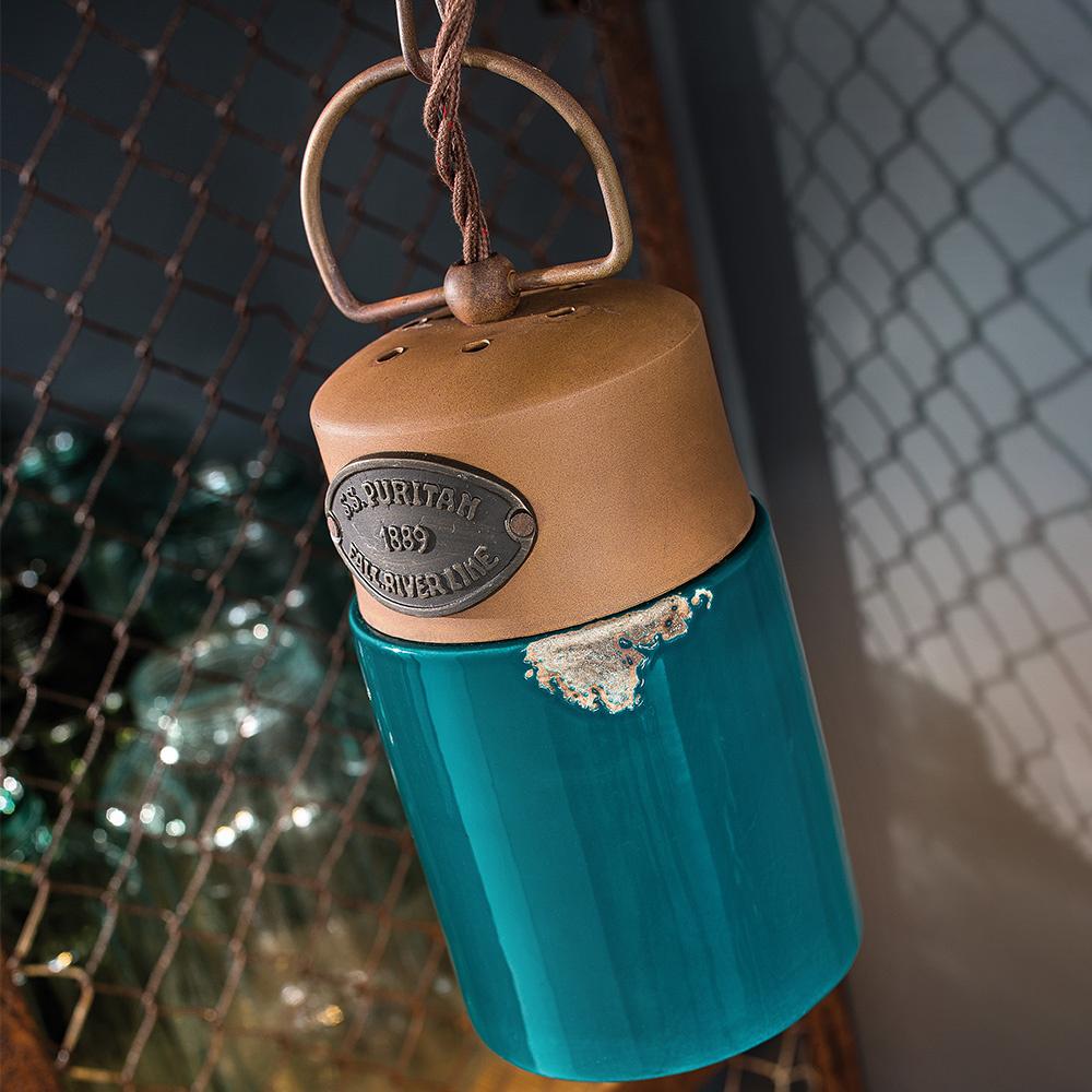 Lampadario Vintage Colors Saliscendi Ferro E Ceramica Verde Petrolio 1 Luce E27