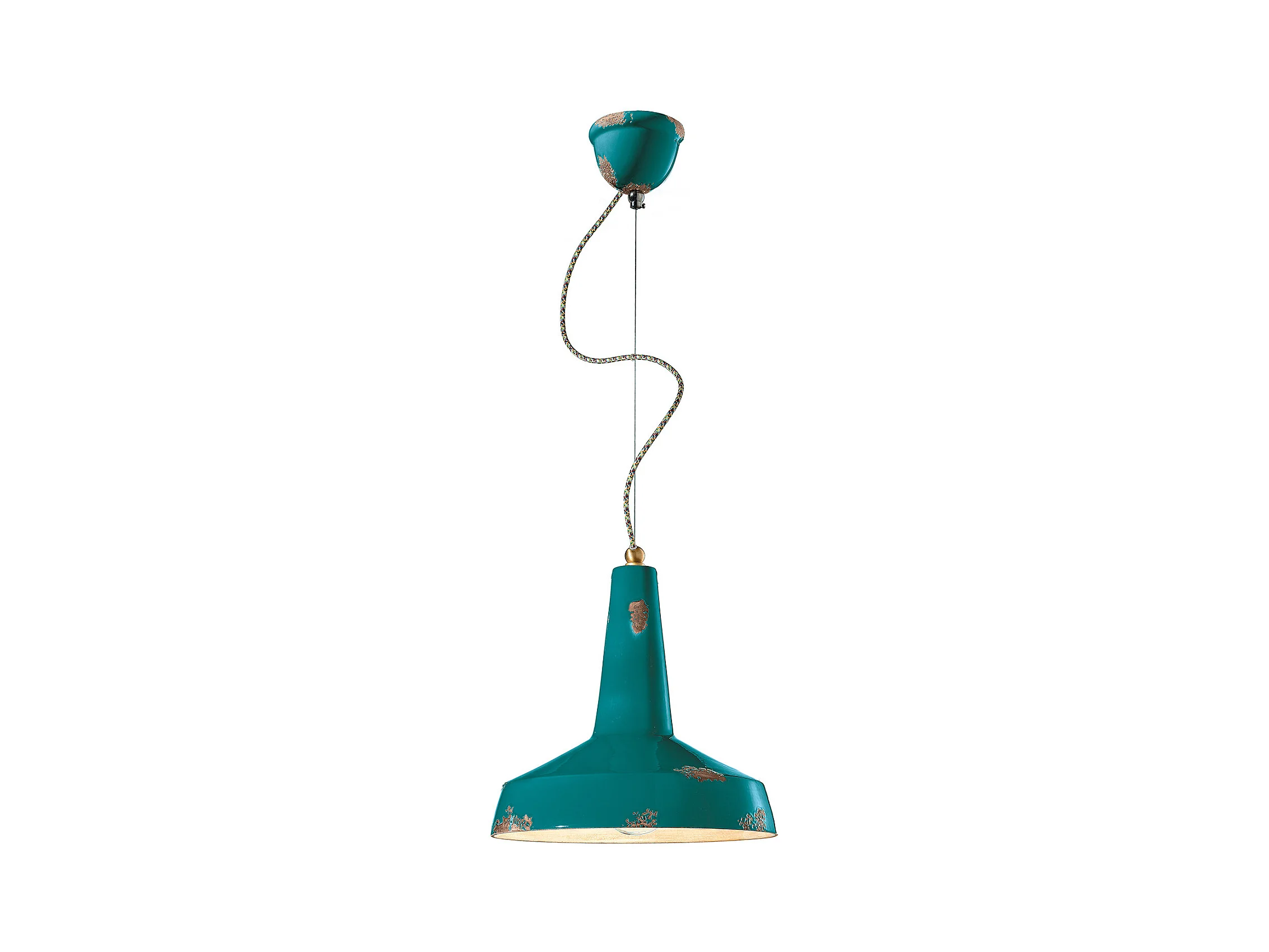 Lampadario Vintage Colors Ferro E Ceramica Verde Petrolio 1 Luce E27 30Cm