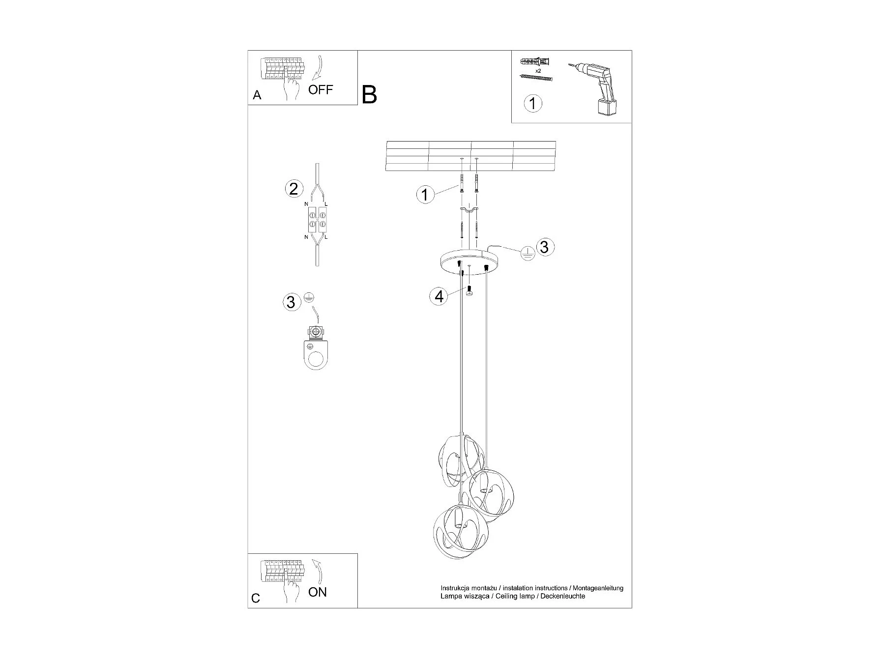 Lampade a sospensione Brive moderno di acciaio - 3 sorgenti luminose 4000K - L.50 x A.117 cm - nero
