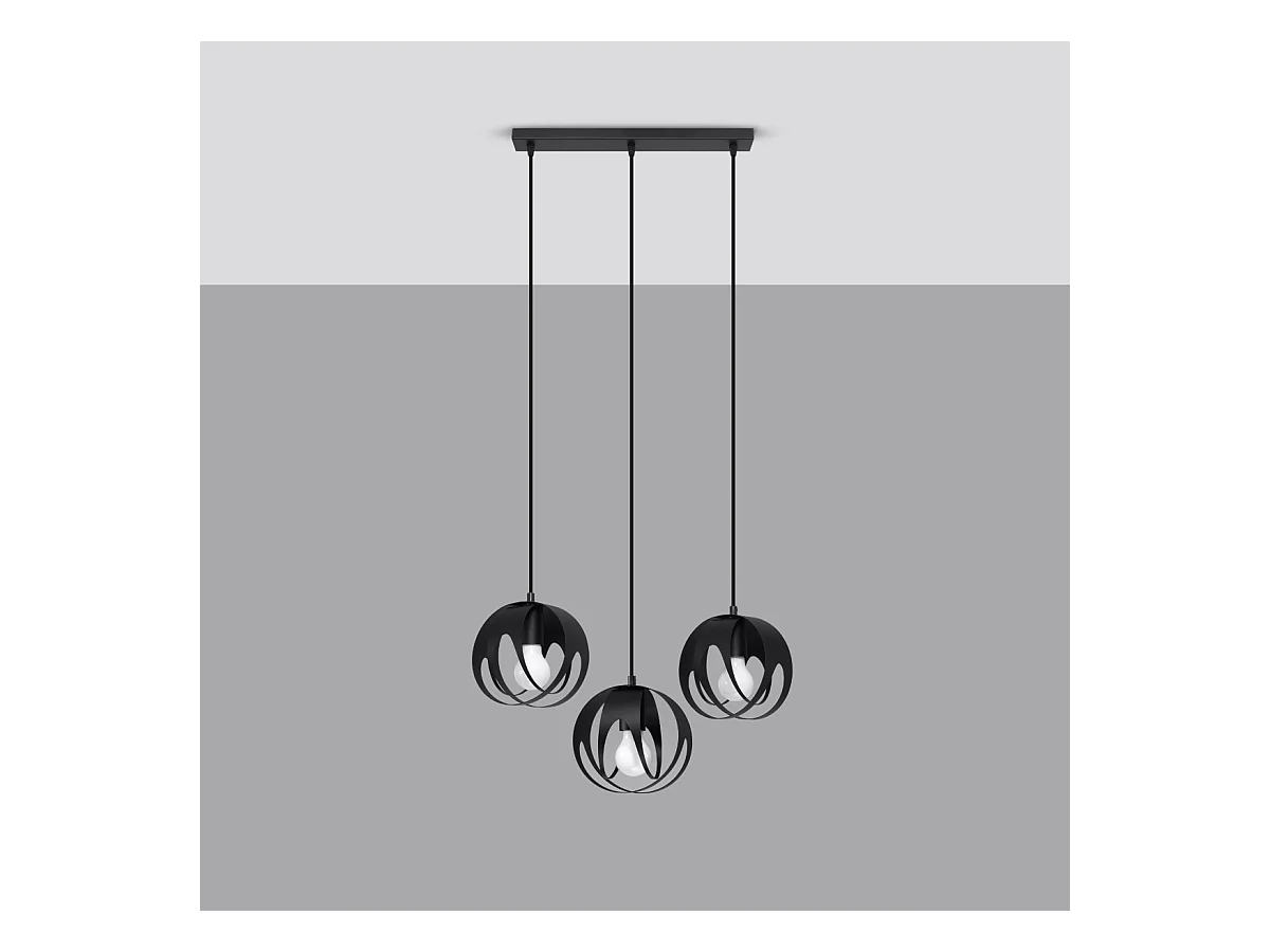 Lampade a sospensione Zavros moderno di acciaio - 3 sorgenti luminose 3000K - L.46 x A.110 cm - nero