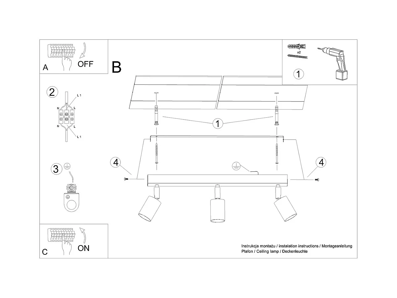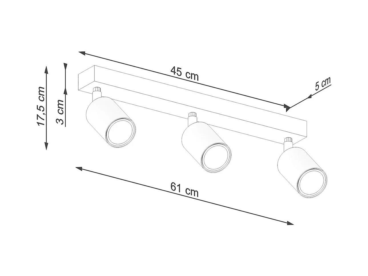 Lampade da soffitto Torim minimalista di acciaio - 3 sorgenti luminose 3000K - L.46 x A.20 cm - nero