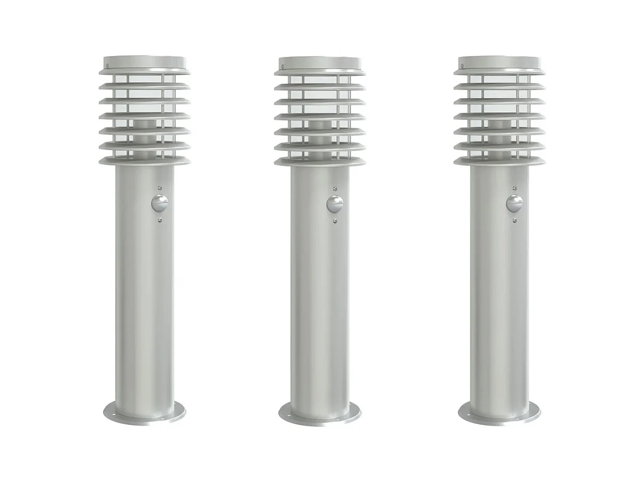 Lampade da terra per esterno con sensori 3 pezzi in acciaio inox Argento 02_0042568