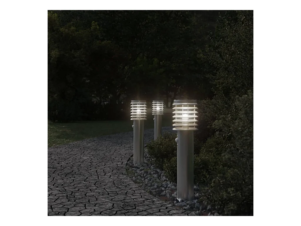 Lampade da terra per esterno 3 pz argento 110 cm acciaio inox Argento 02_0042556