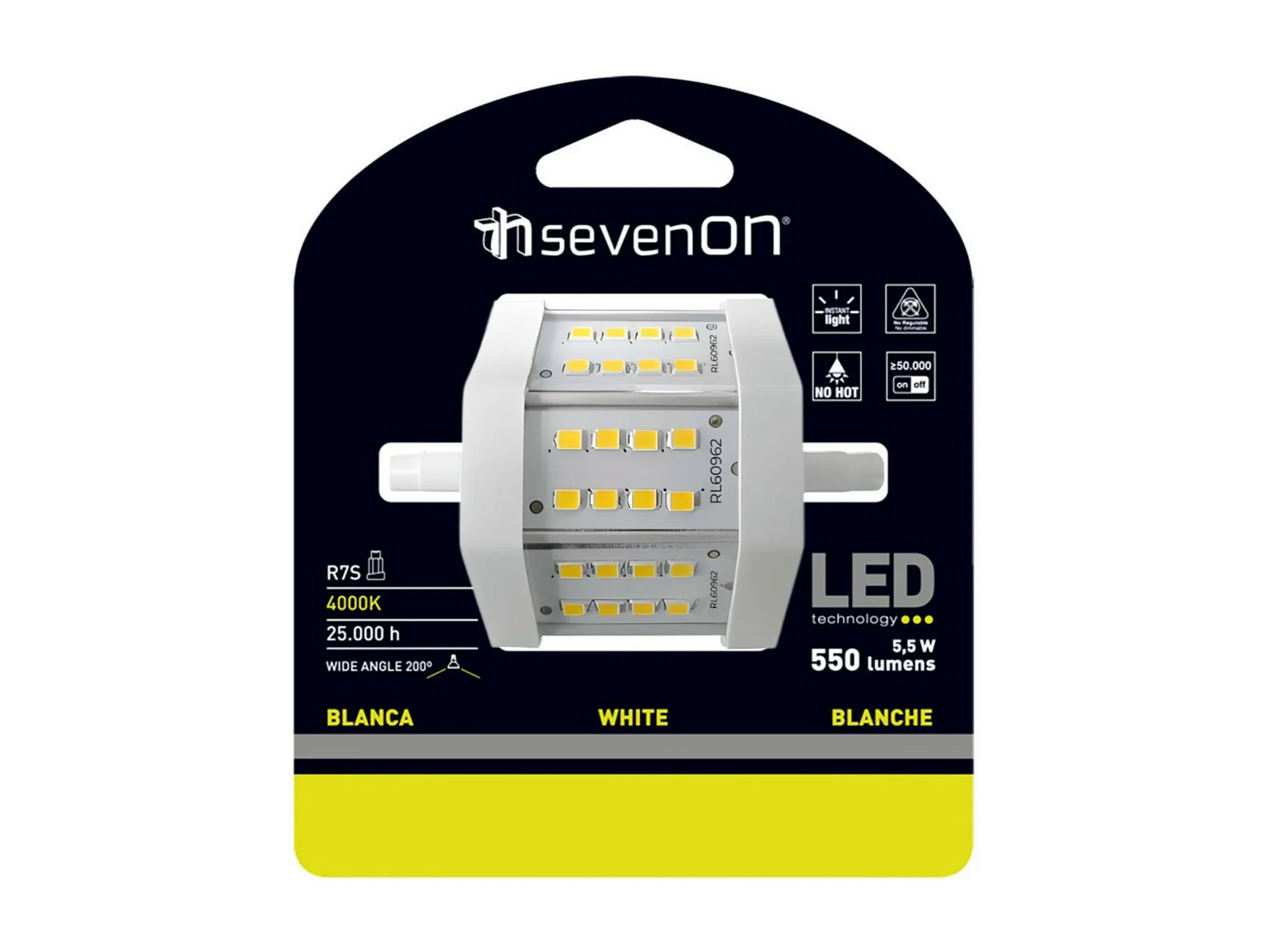 Lampadina Tubo LED R7S 5.5W Equi.45W 550lm 4000K 25000H 7hSevenOn