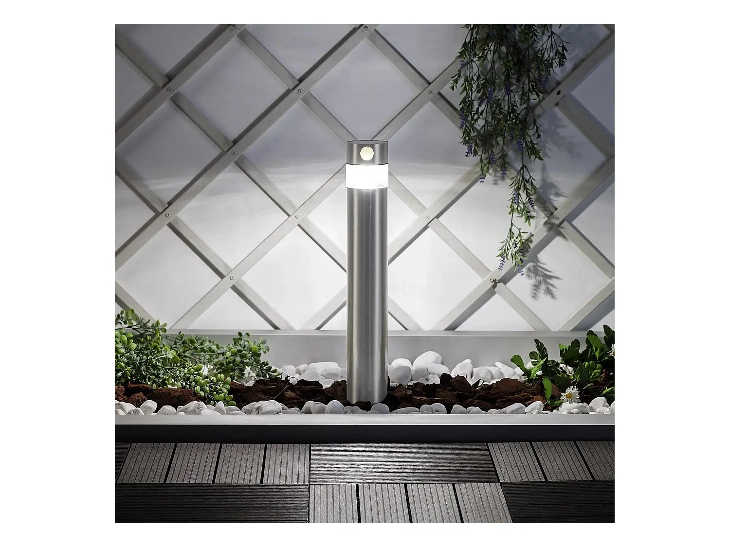 Lampioncino Solare Esterni LED 1.5W Superficie 50cm Acciao Inox con Sensore di Movimiento 5000K Bianco Freddo