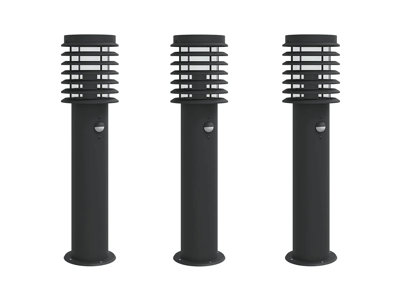 Lampade da terra per esterno con sensori 3 pezzi in acciaio inox Argento 02_0042567