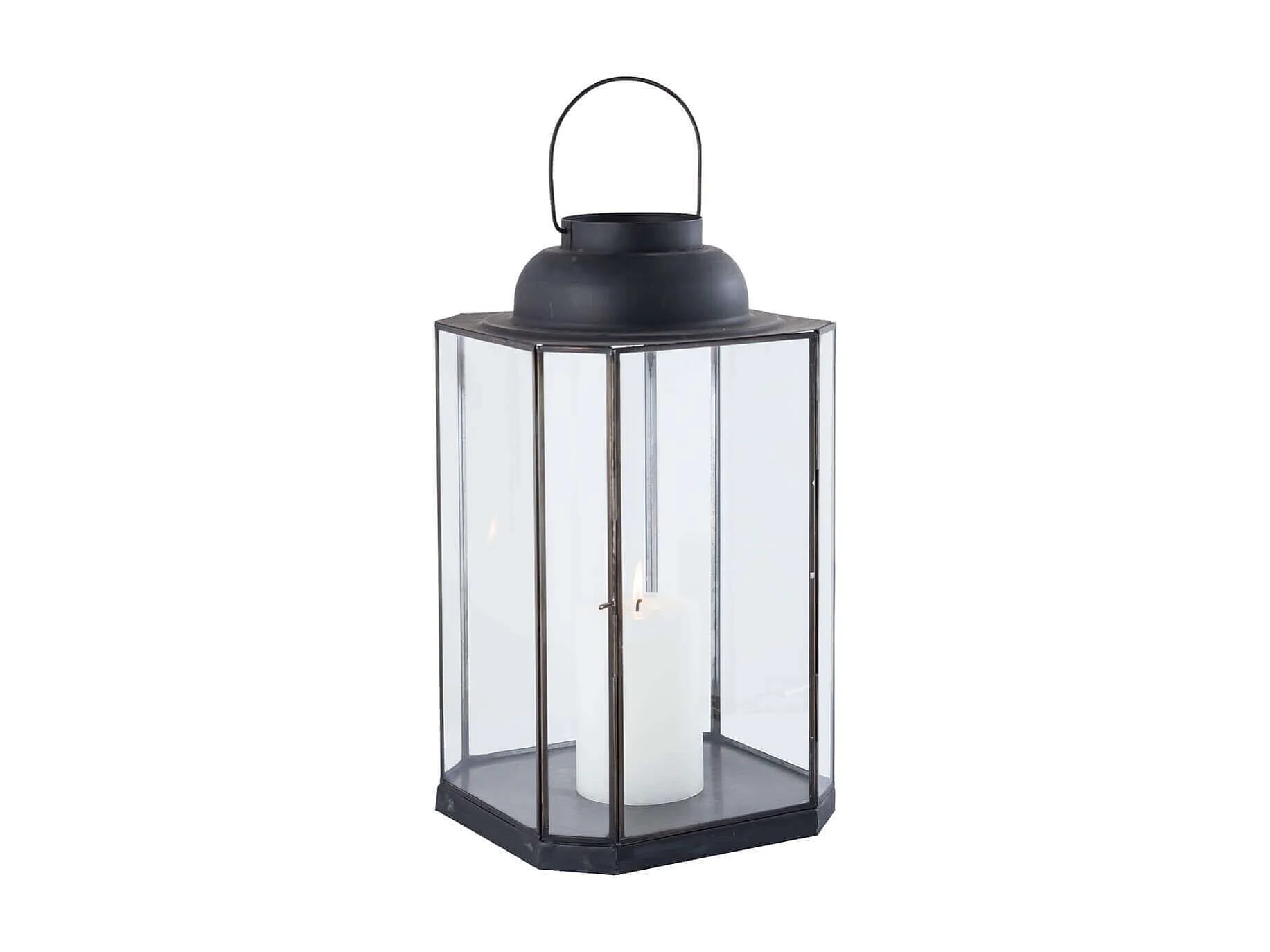 MilaniHome.it - Lanterna In Vetro E Metallo Di Design Moderno Stile Minimalista Portacandela, Cm 27x27x49,5 Hdi coloreAntracite