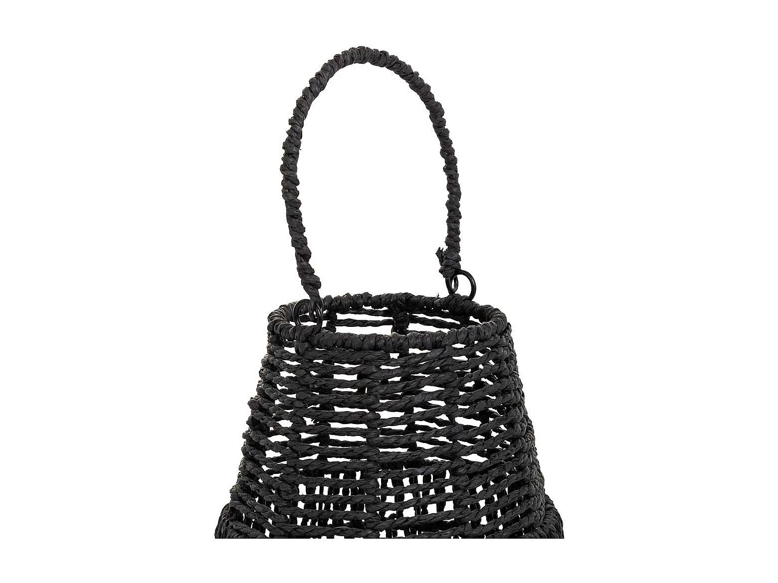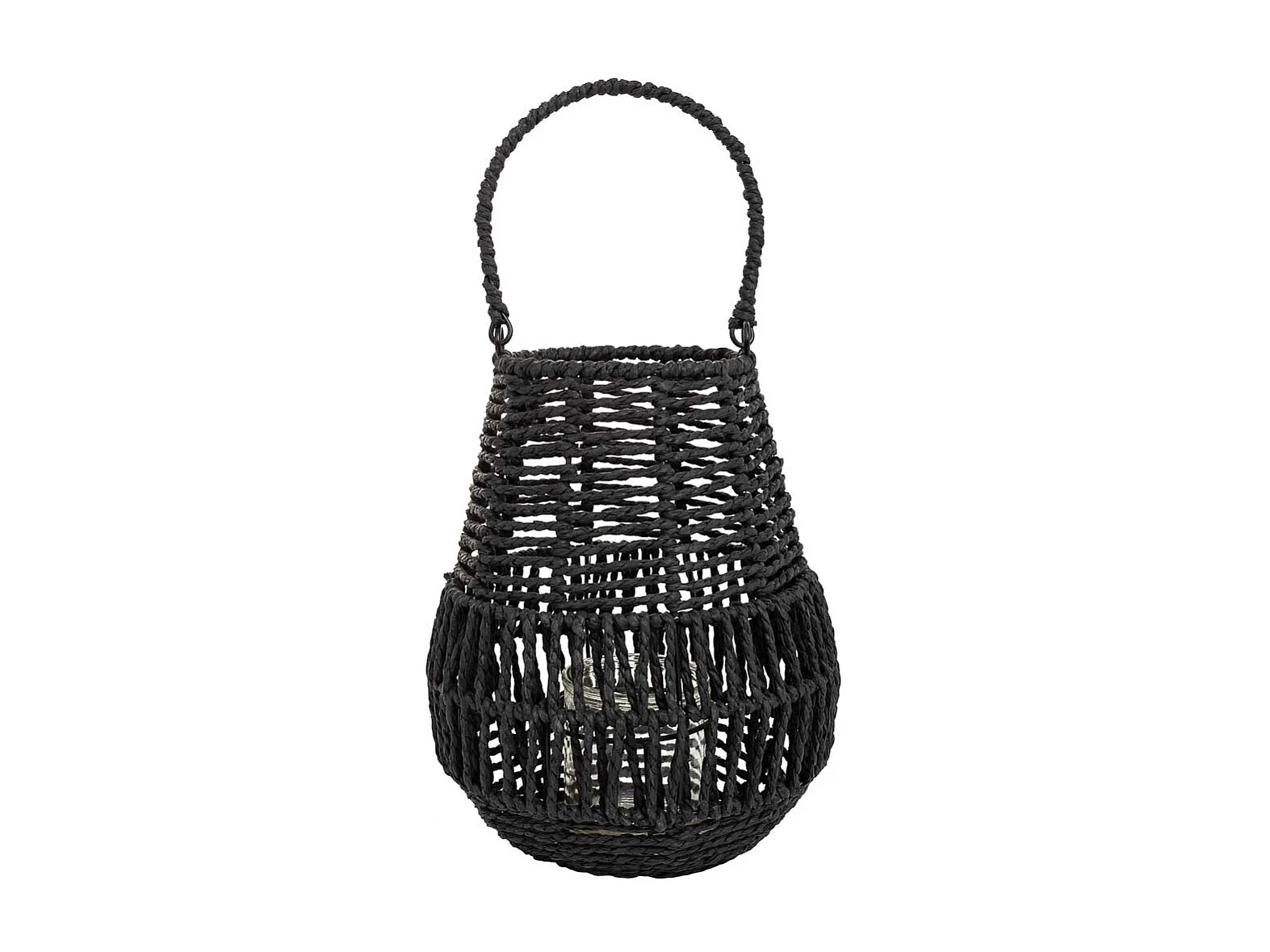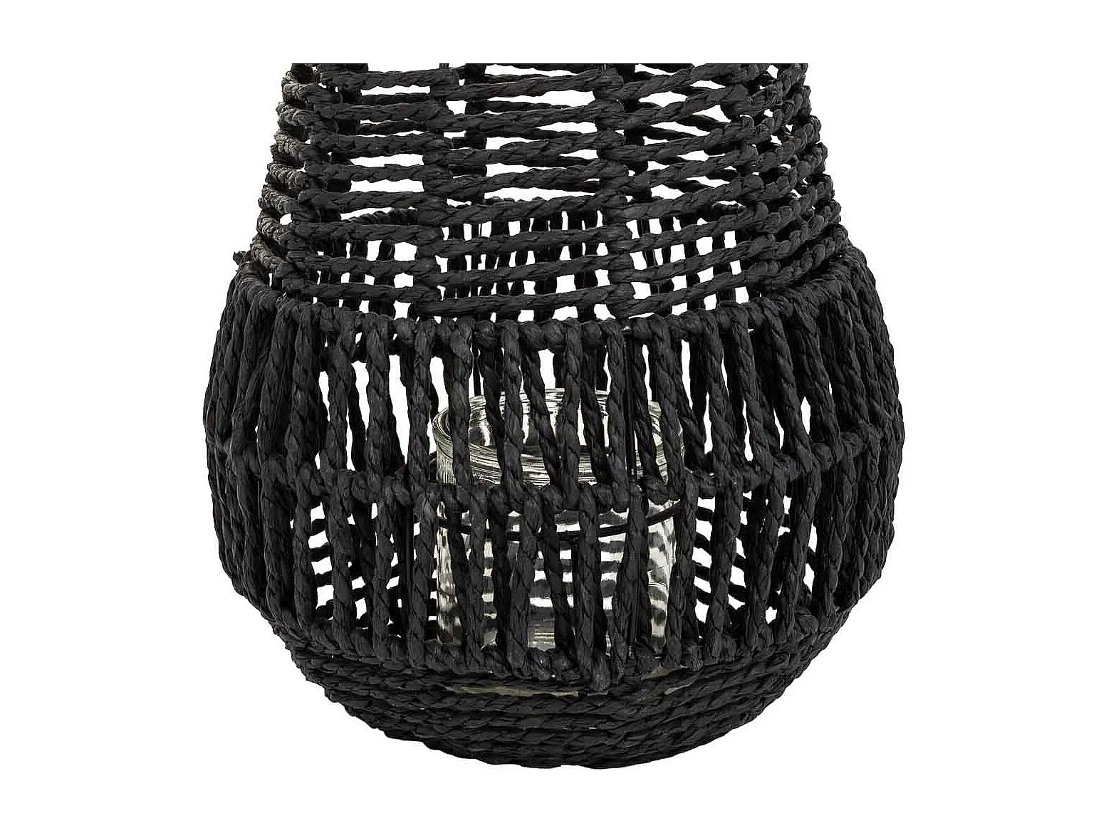 Lanterna portacandele in metallo e corda in carta nera d21x25h