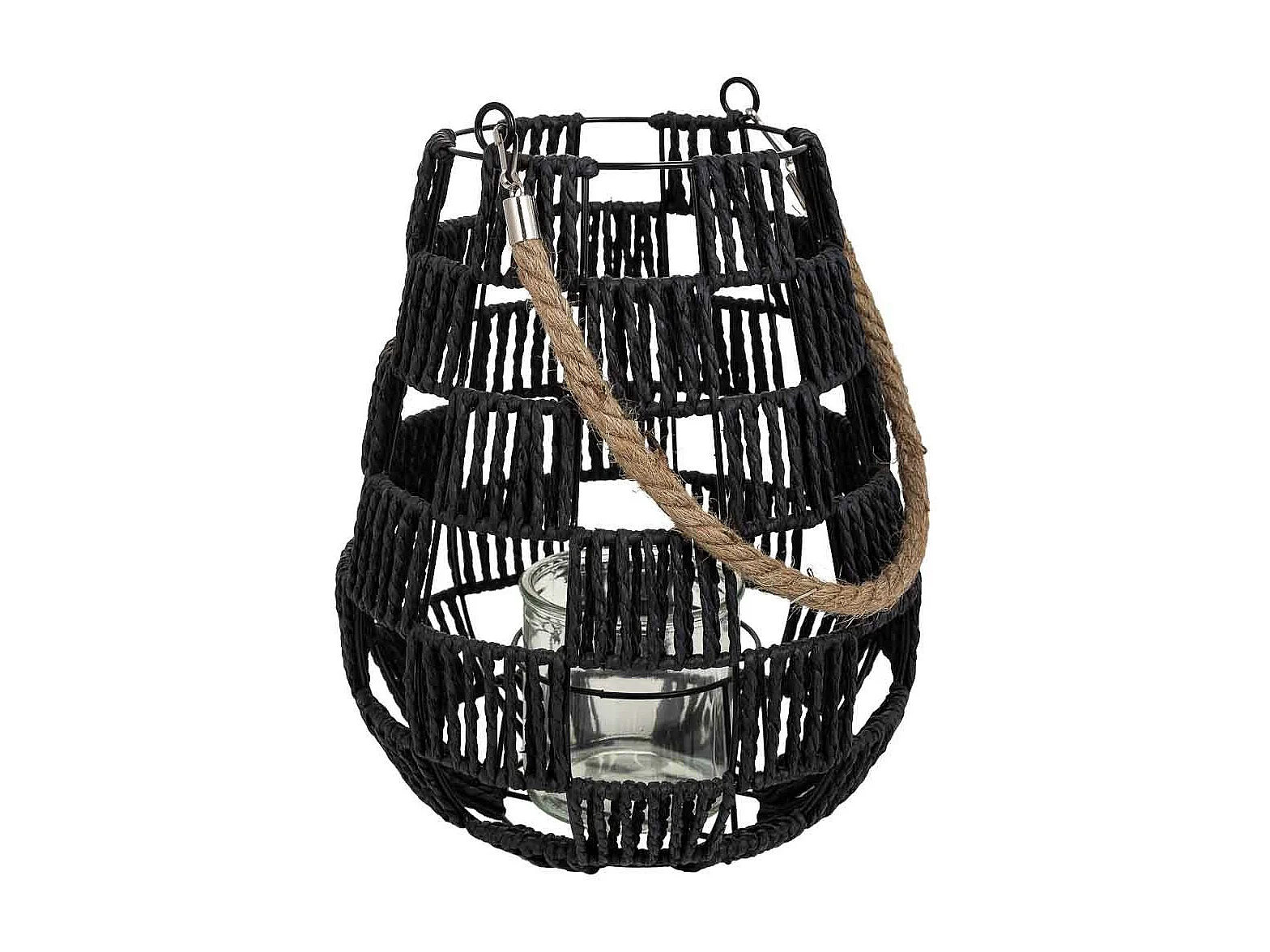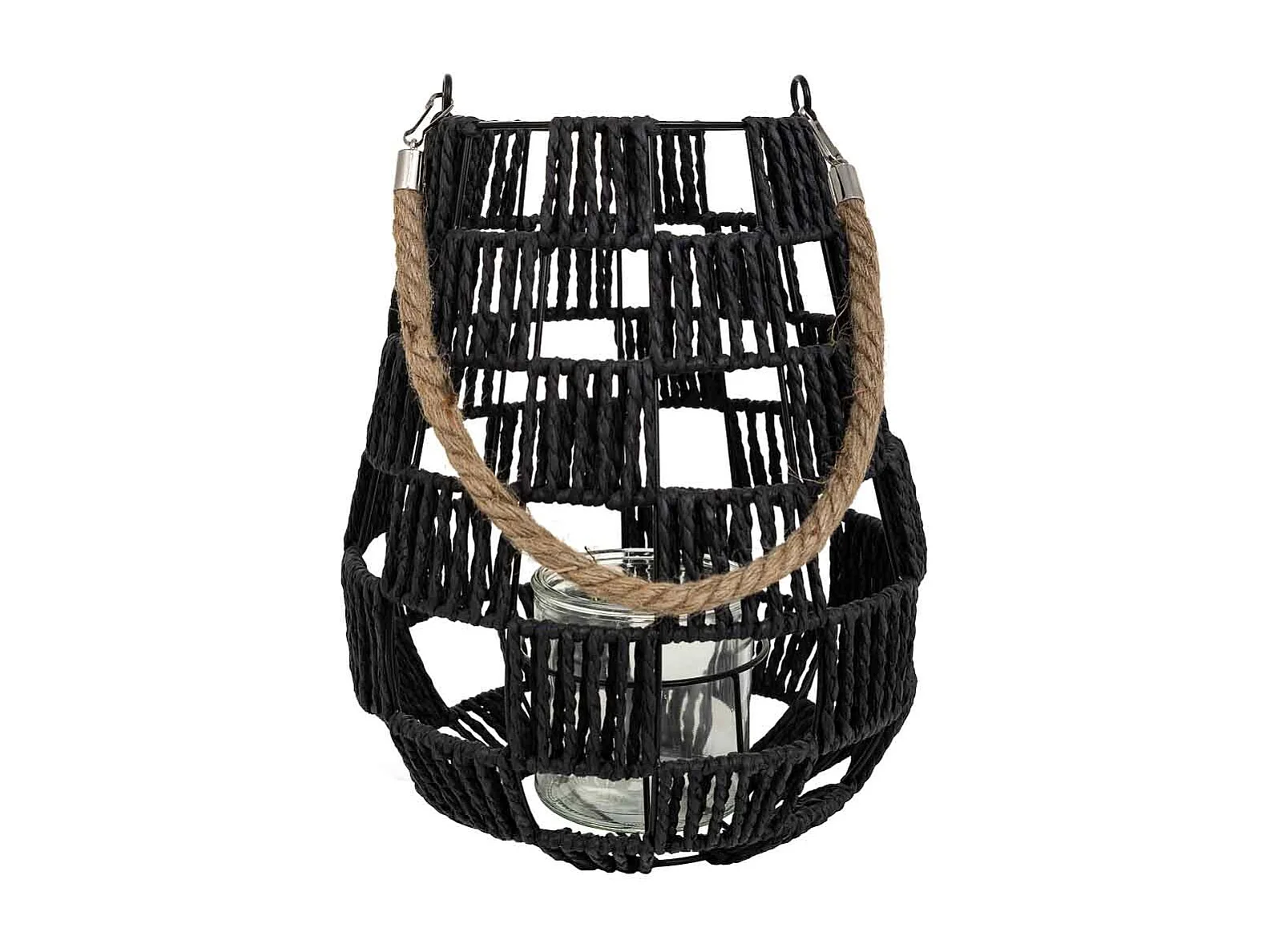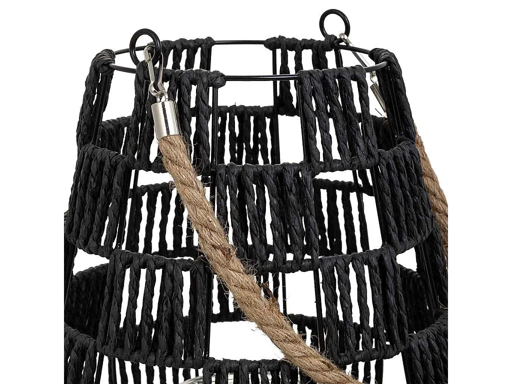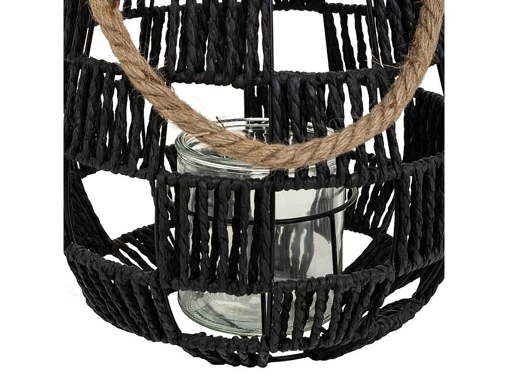 Lanterna portacandele in metallo e corda in carta nera d25x30h