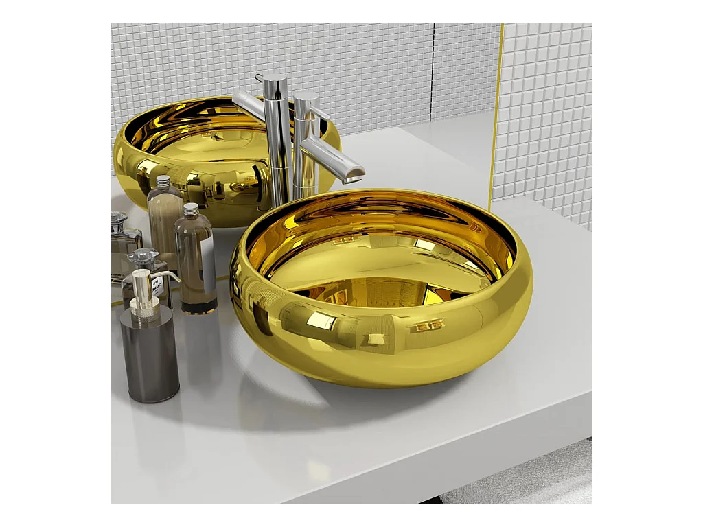 Lavabo con troppopieno 41 x 41 x 15 cm Ceramica Oro