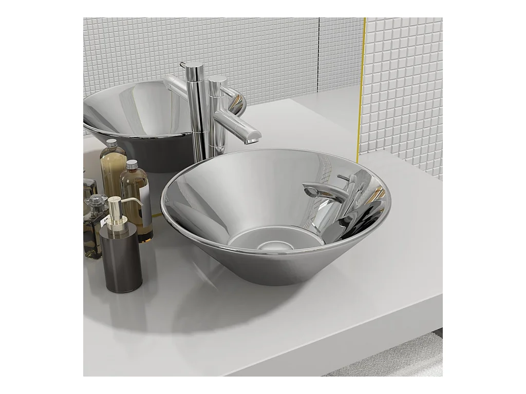 Lavabo vasca con rubinetto e piletta push-pull In vetro temperato