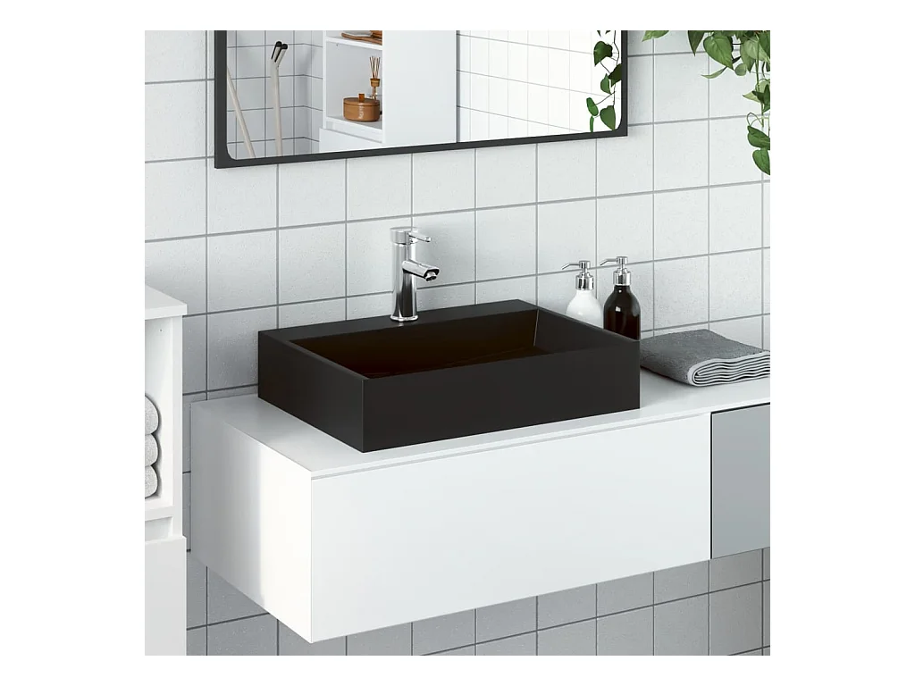 Lavabo 60x38x11 cm colata minerale/marmo nero opaco